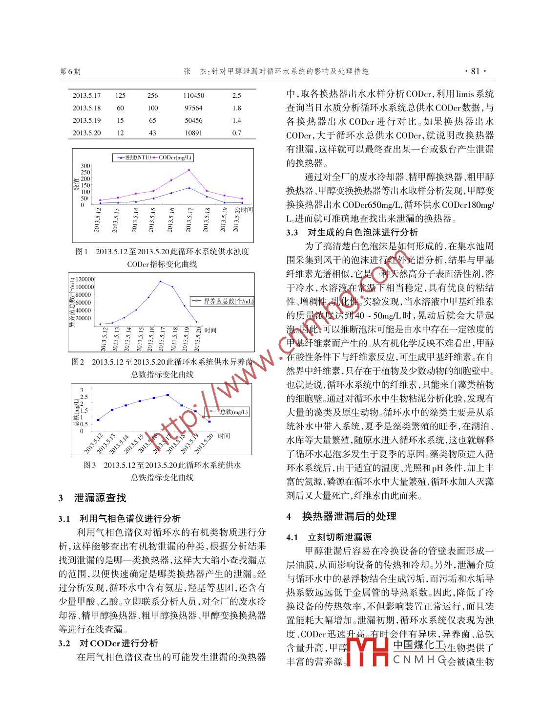 針對甲醇泄漏對循環(huán)水系統(tǒng)的影響及處理措施