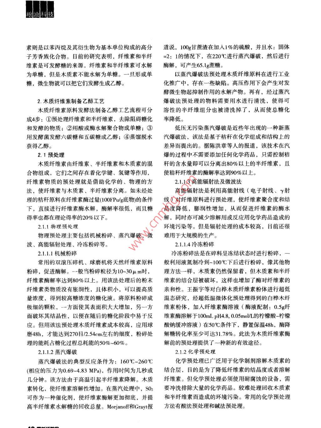 木質(zhì)纖維素為原料制備乙醇的工藝