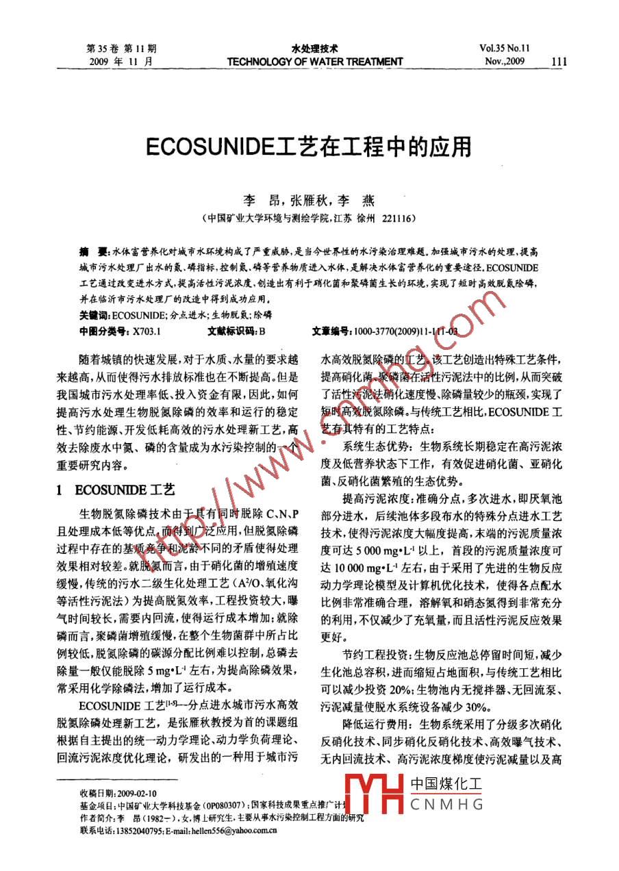 ECOSUNIDE工藝在工程中的應(yīng)用