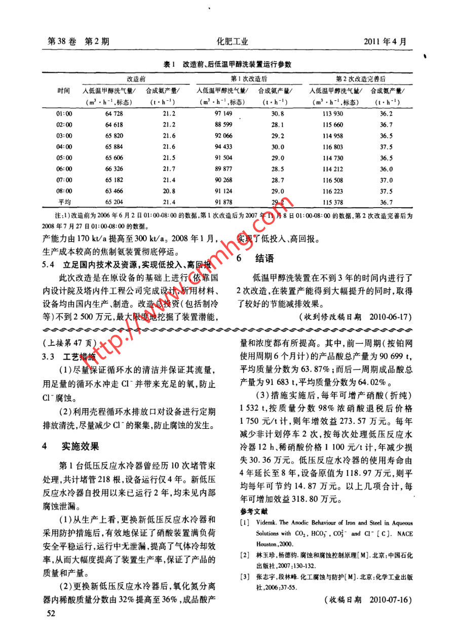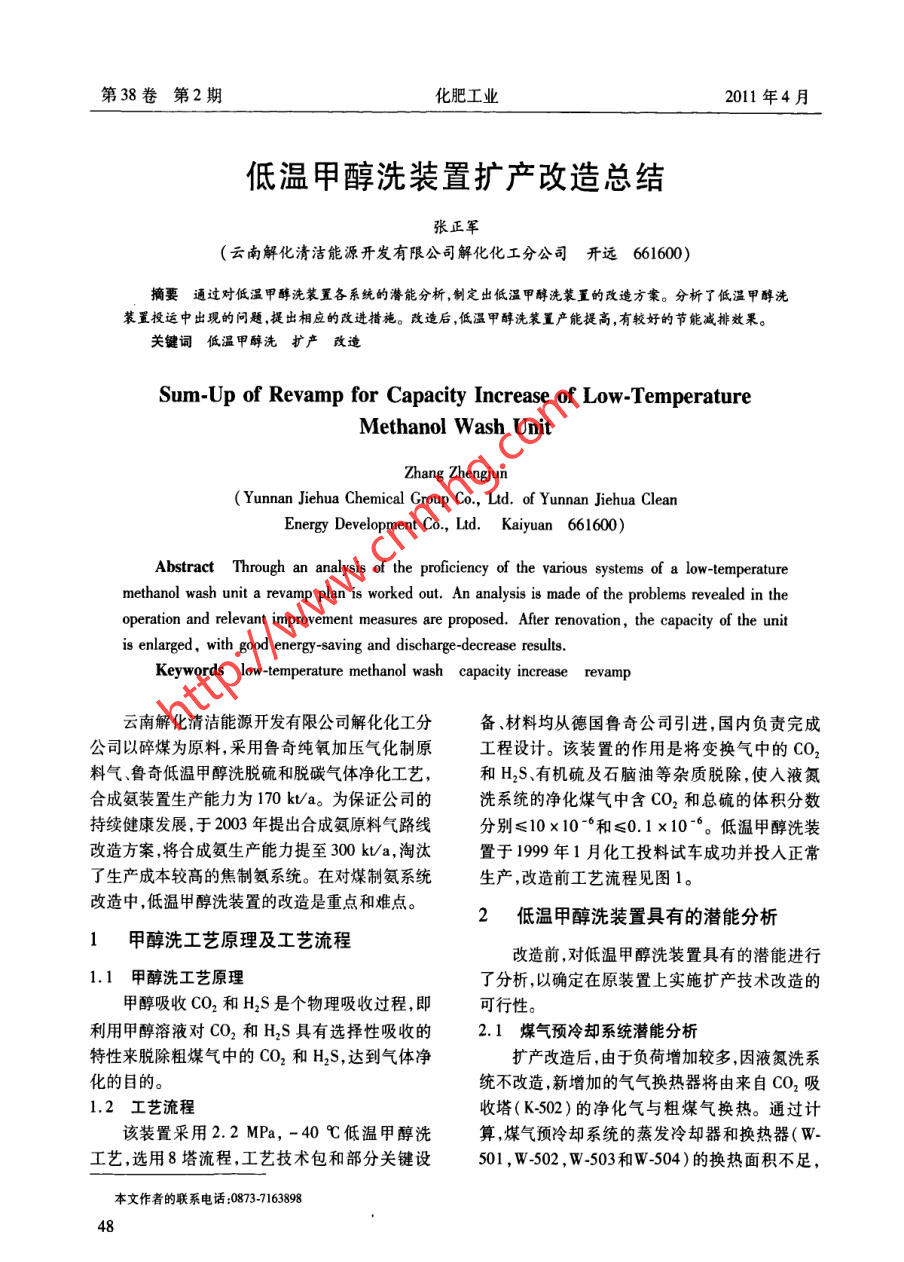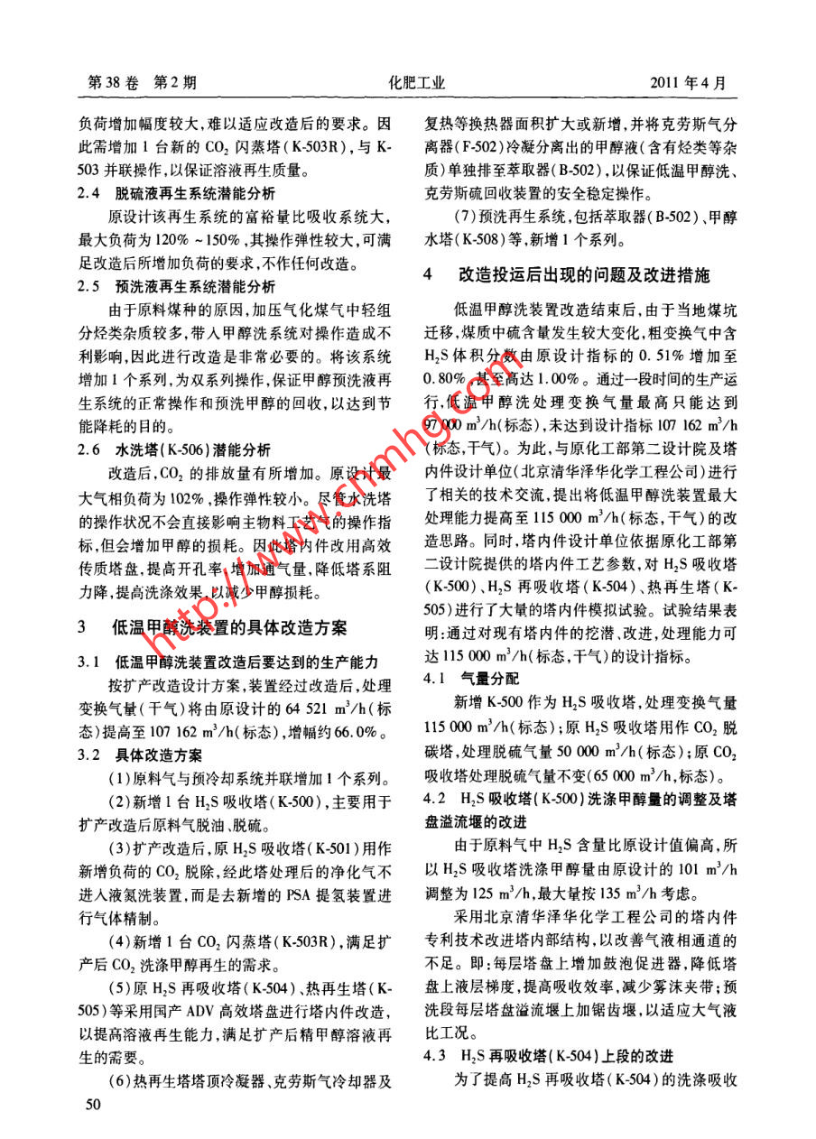 低溫甲醇洗裝置擴產(chǎn)改造總結