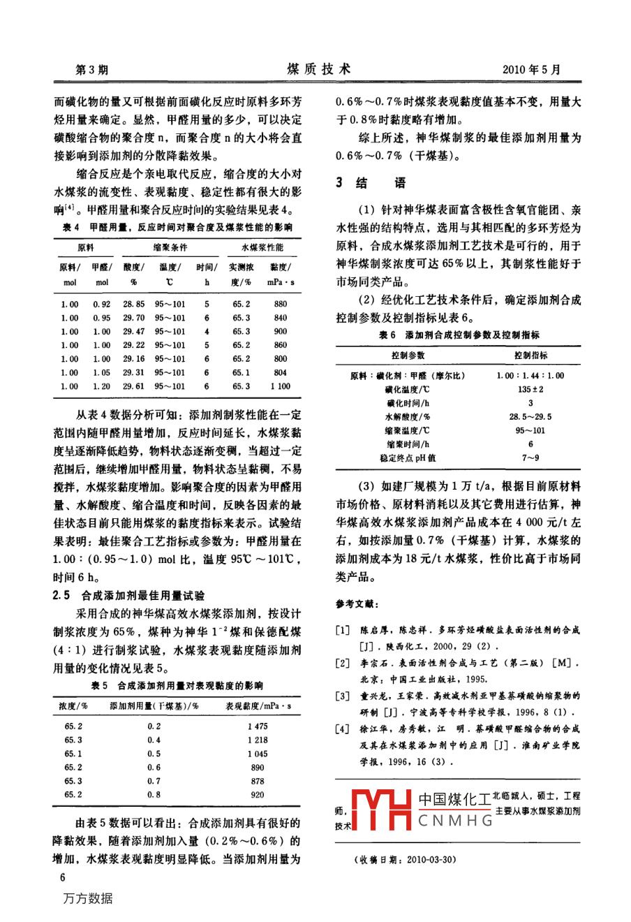 神華煤高效水煤漿添加劑的研制