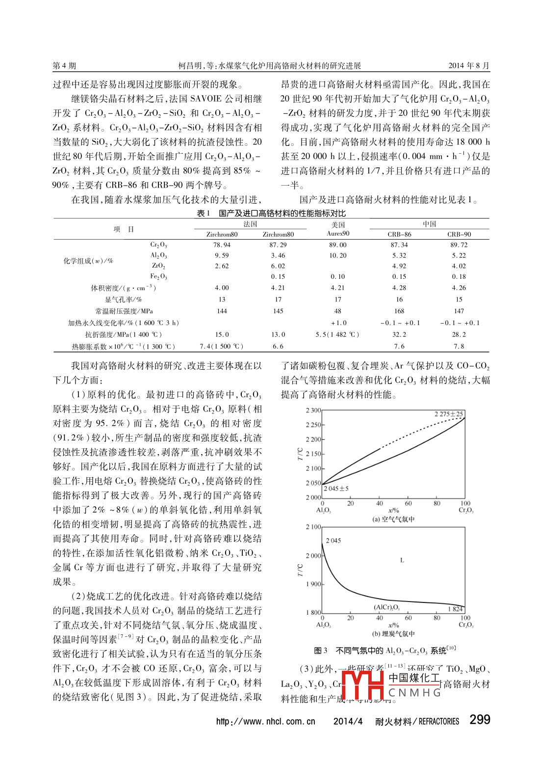 水煤漿氣化爐用高鉻耐火材料的研究進(jìn)展