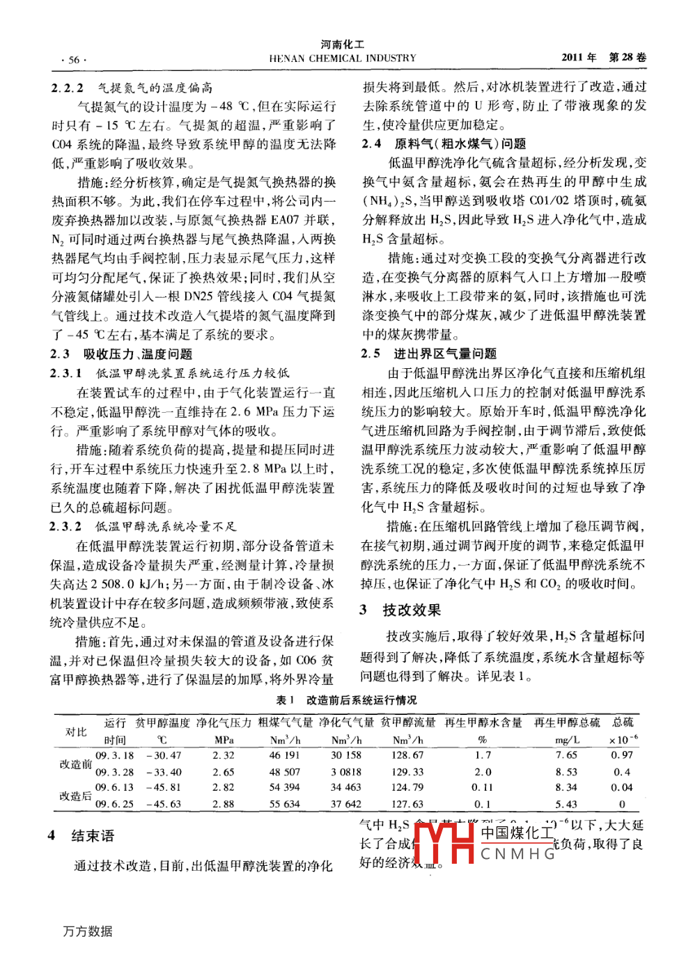 HT-L煤氣化制甲醇之低溫甲醇洗脫硫系統(tǒng)存在問題及改造措施