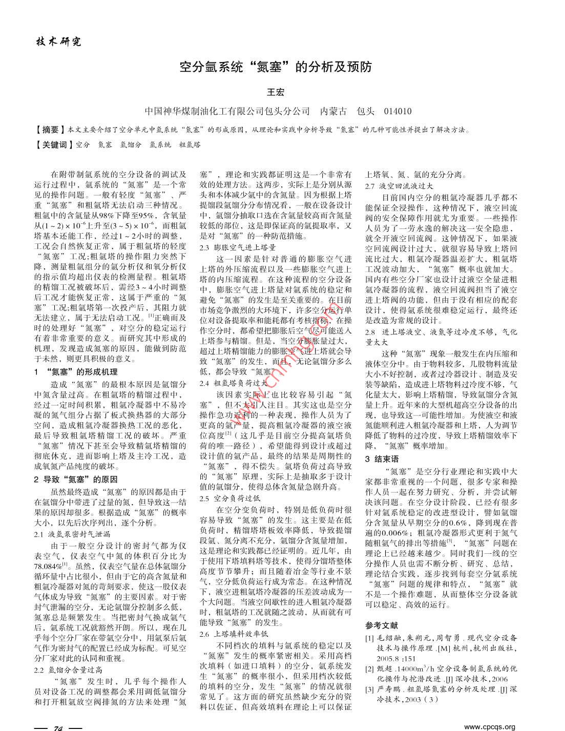 空分氬系統(tǒng)“氮塞”的分析及預(yù)防