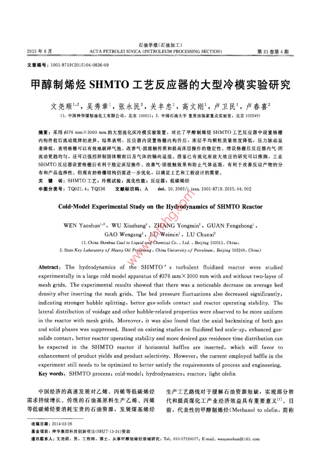 - 作者單位:中國神華煤制油化工有限公司,中國石油大學(xué)重質(zhì)油國家重點(diǎn)實(shí)驗(yàn)室