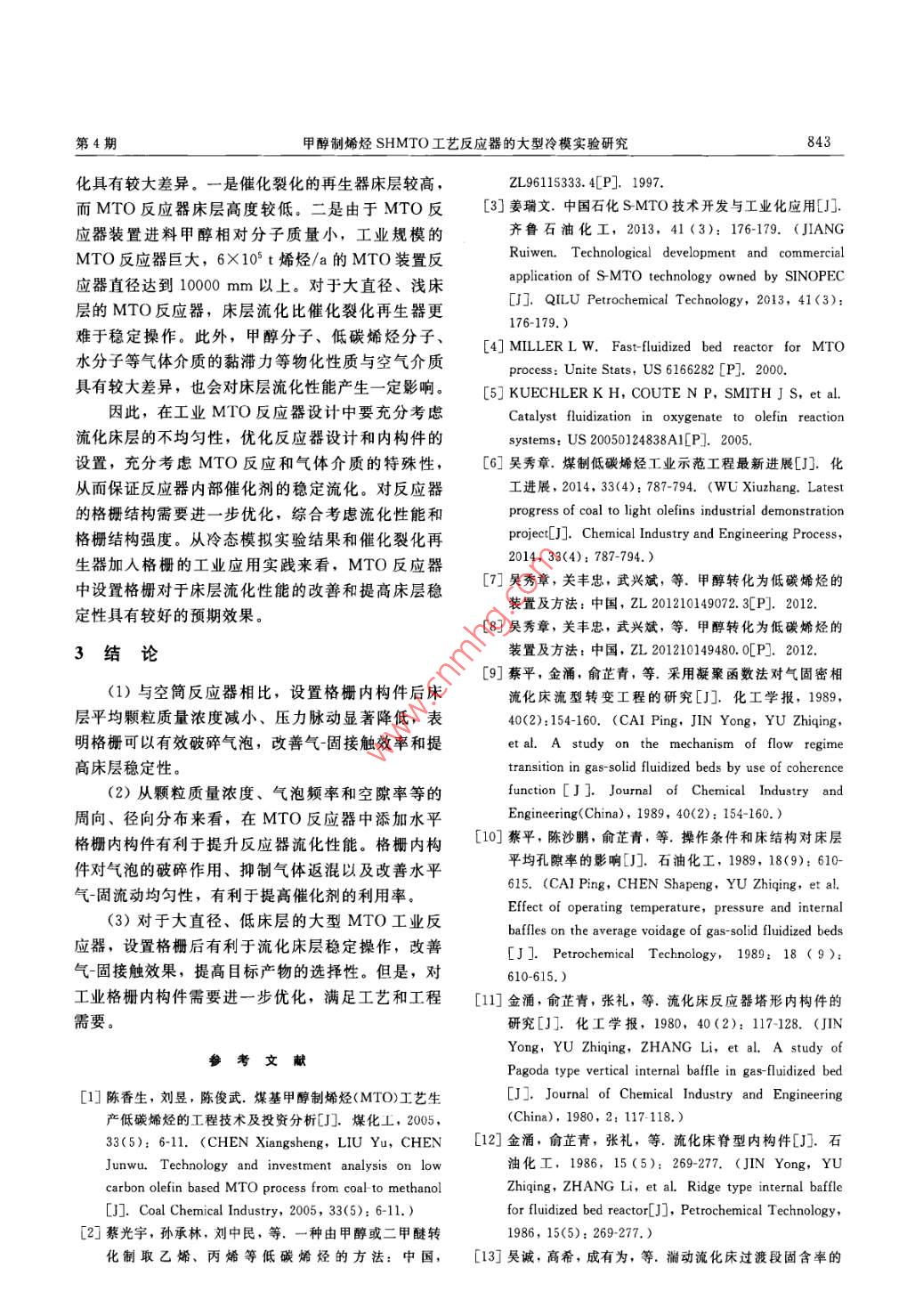 甲醇制烯烴SHMTO工藝反應(yīng)器的大型冷模實(shí)驗(yàn)研究
