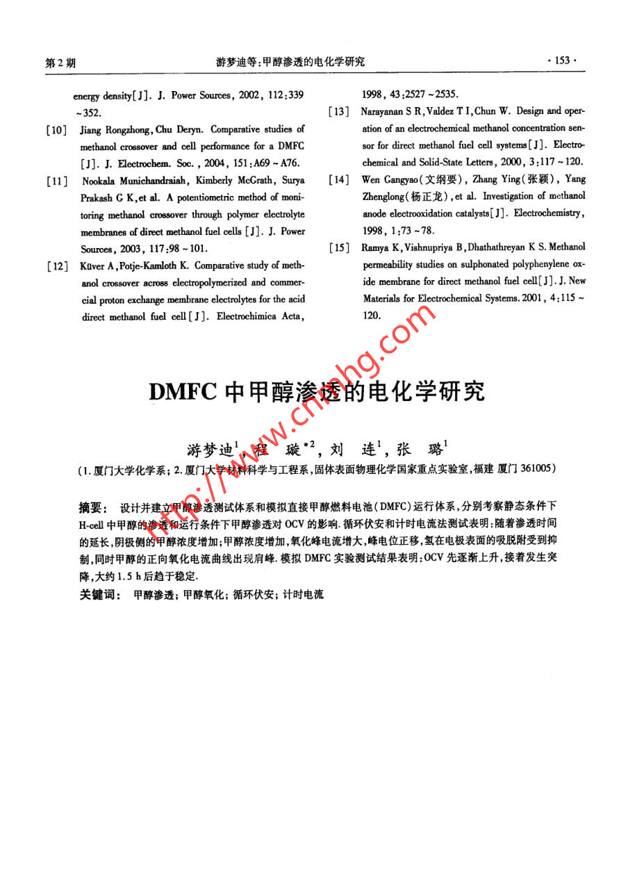 DMFC中甲醇滲透的電化學研究