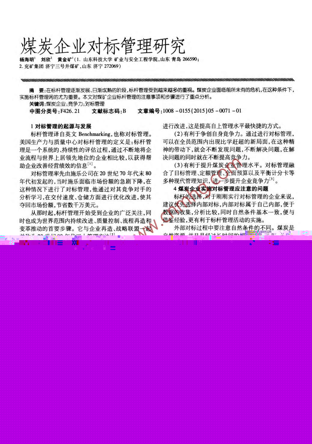 煤炭企業(yè)對(duì)標(biāo)管理研究