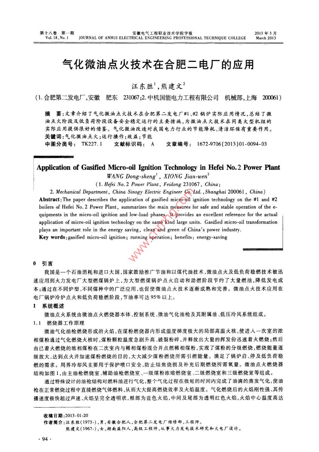 氣化微油點(diǎn)火技術(shù)在合肥二電廠的應(yīng)用