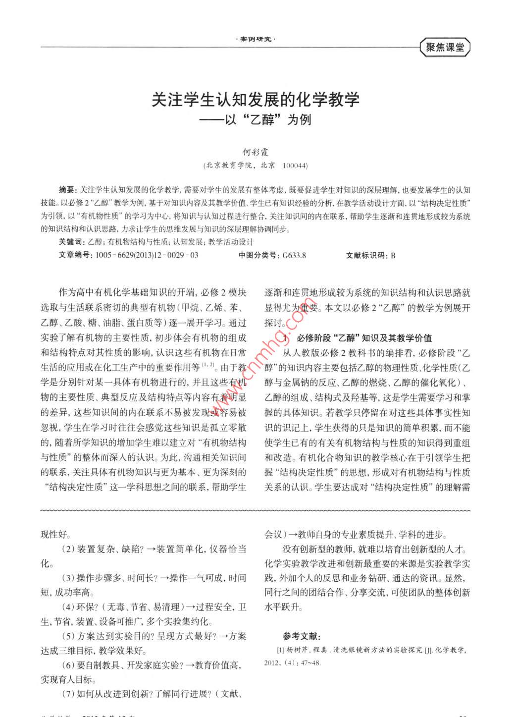 關(guān)注學(xué)生認(rèn)知發(fā)展的化學(xué)教學(xué)——以“乙醇”為例
