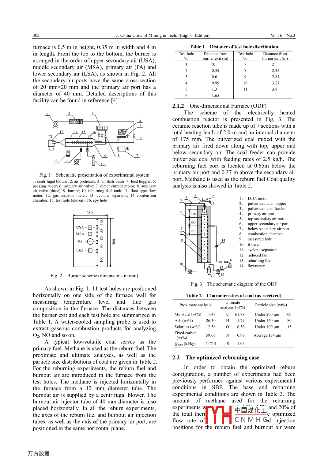 L. Chinaa Univ of Mining Tech (English Edition)VoL 16 No. 3Experimental Research and mathematicalModelling for Coal reburning in furnaceXIANG Jun, SU Sheng, SUN Lu-shi, SUN Xue-xin, ZHANG Zhong-xiao, ZHU Ji-muState Key laboratory of Coal Combustion, Huazhong University of Sci. Tech, Wuhan, Hubei 430074, China2University of Shanghai for Sci.& Tech, Shanghai 200093, chinaSHanghai Bao Steel Power Plant, Shanghai 200971, ChinaAbstract: Reburning technology is one of the most cost-effective NOx reduction strategies for coal combustion systemsIn this paper, a nitric oxide submodel incorporated into a comprehensive coal combustion model was developed forpredicting NOx reduction in a 93 kw laboratory-scale coal combustion furnace by reburning. This NO submodelincluding reburning mechanism, requires the solution of only two transport equations to model the behavior of Noreduction in the reburning process. A number of experiments have been performed in the same furnace, and theexperimental data obtained from the optimized reburn configuration was used to validate the model. Measurements andpredictions both show above 50% reduction of NO emissions for the optimized reburning process. Profile comparisonsshow that the predicted temperature and oxygen concentration match well with the measurements, and the general trendof predicted NO concentration is very similar to that measured. The results of this study show that the present nitricoxide submodel depicts quite well the observed behaviour of NO annihilation in the reburning process. It is expectedthat this usable and computationally economic model represents a useful tool to simulate the gaseous fuel reburningprocess for the researchers concerned with practical combustorsKey words: coal combustion; nitric oxide; reburning; experimental research; mathematical modelingCLC number: TK 2231 Introductionof nitrogen oxides or other key intermediates withhydrocarbons or reburn fuel compounds areCoal combustion is one of the main sources ofmportant for reburning predictions. The approach toforming NOx in the atmosphere. To reduce NOcalculate the concentration of important radicals inemissions, various NOx reduction strategies have reburning reactions is also critical for predicting NObeen investigated. Among recent developments forreduction. For the design and analysis of large andreducing NOx emissions, reburning technologyindustrial scale reburning technique applications,considered to be one of the most cost-effective onessignificant further studies for simplifying modelsfor coal combustion systems, capable of reducing and improving predictions for reburning processes50%-70%ofNO30are requiredIn the past several years, many investigatorsIn this study, a number of experiments werehave worked on laboratory-scale measurementsperformed in a laboratory-scale furnace withkinetic mechanisms and numerical simulation ofreburning and an optimized reburning configurationreburning processes!-2. However, because of thewas obtained with maximum No, reduction. Acomplex chemistry of NOx in reburning reactions, acompact NO submodel, including a reburninglarge number of computational transport equationsmechanism, was incorporated into a comprehensiveneeds to be solved. A compact NO submodel, whichcoal combustion model for predicting thissimulates the vital chemical pathways in reburningoptimized reburn process in the furnacereactions, is required to be incorporated into acomprehensive coal combustion model forsimulating the reburning process. In recent years2 Experimental Proceduresome of the reburning process predictions, making2.1 Experimental system and conditionuse of reduced kinetic schemes or global rate2.1.1 Single Burner Furnace(SBFmodelling results show that the predictions are stillFig. I represents a schematic presentation ofinaccurate. It is found that those possible reactions the experimental system. The 93 kw single-burnerReceived 12 December 2005; accepted 05 January 2006中國(guó)煤化工Project 2004CB217704-4 supported by the Special Funds for Major State Basic Research Projects ofHCNMH Roject of ChineseCorrespondingauthorTel:+86-27-87542417-8509:E-mailaddresssusheng2003@163.comJ. China Univ, of Mining Tech(English EditionVoL16No.3furnace is 0.5 m in height, 0.35 m in width and 4 mTable 1 distance of test hole distributin length. From the top to the bottom, the burner isTest hole Distance from Test hole Distance fromarranged in the order of upper secondary air(USA),burner exitburner exit(middle secondary air(MSA), primary air(PA)andlower secondary air(LSA), as shown in Fig. 2. All0.35the secondary air ports have thcross-section40.95of 20 mmx20 mm and the primary air port has adiameter of 40 mm. Detailed descriptions of this1.65facility can be found in reference [4]2. 1.2 One-dimensional Furnace(ODFThe scheme of the electrically heatedo磁combustion reactor is presented in Fig. 3. Theceramic reaction tube is made up of 7 sections with atotal heating lenth of 2.0 m and an internal diameterof 175 mm. The pulverized coal mixed with theprimary air fired down along with top, upper andr. the coal feedepdepulverized coal with feeding rates of 2.5 kg/h. Thereburning fuel port is located at 0.65m below theFig. 1 Schematic presentation of experimental systemprimary air port and 0.37 m above the secondary air1. centrifugal blower; 2. air preheater; 3. air distributor; 4. feed hopper; 5port. Methane is used as the reburn fuel Coal qualityIcking auger; 6. primary air valve; 7. direct current motor; 8. auxiliaranalysis is also showed in Table 2valve(three): 9, bumer; 10. reburning fuel tank; 11. float type flohamber; 15. test hole(eleven); 16. spy hole1. D. C. motor2. pulverized coal hopper3. pulverized coal feederprimary air port6.P Secondary air portMSA-曰-combustion chambehole0. BlowerLSA-日-¥11. cyclone separator12. induced fan3. reburning fuel14. flowmeterFig 2 Burner scheme(dimensionsFig 3 The schematic diagram of the ODFAs shown in Fig. 1, 1l test holes are po