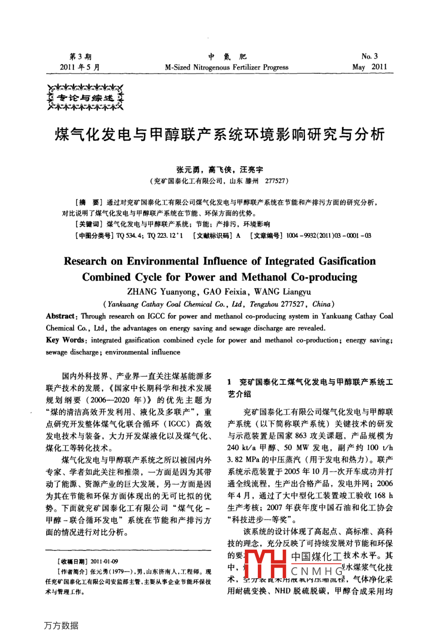 煤氣化發(fā)電與甲醇聯(lián)產(chǎn)系統(tǒng)環(huán)境影響研究與分析