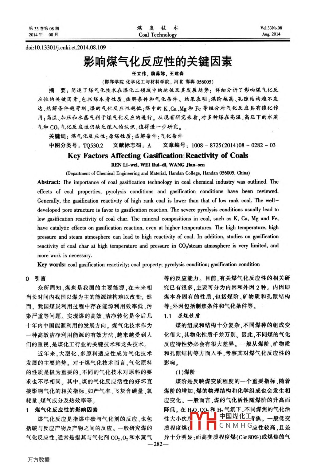影響煤氣化反應(yīng)性的關(guān)鍵因素