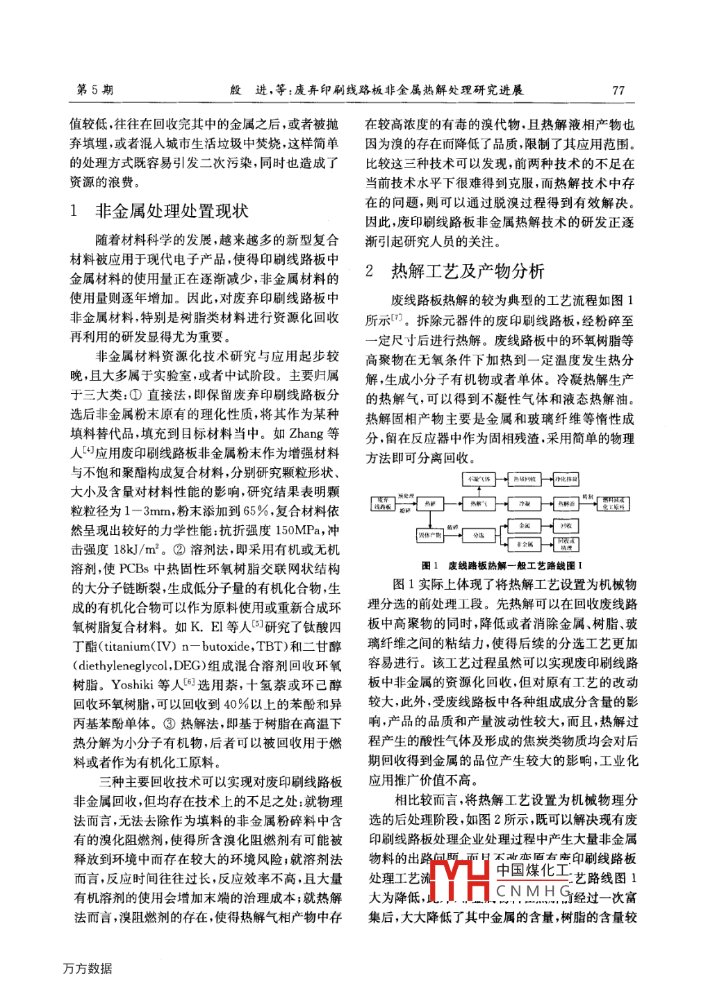 廢棄印刷線路板非金屬熱解處理研究進(jìn)展