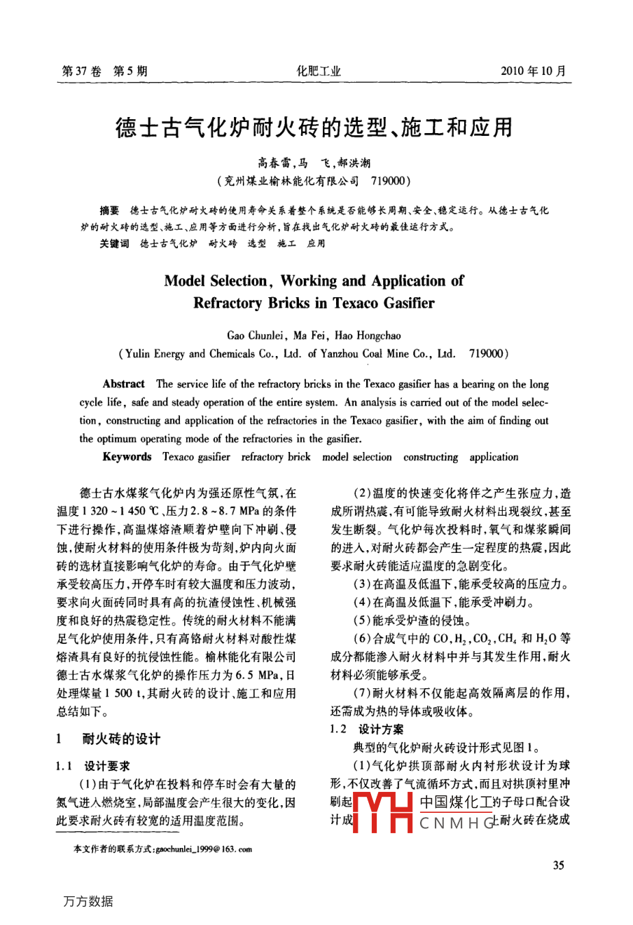 德士古氣化爐耐火磚的選型、施工和應用 德士古氣化爐耐火磚的選型、施工和應用