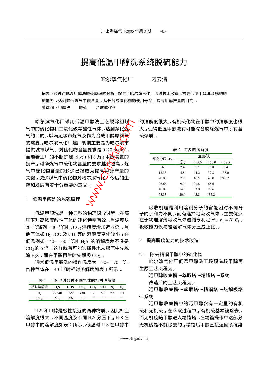 提高低溫甲醇洗系統(tǒng)脫硫能力