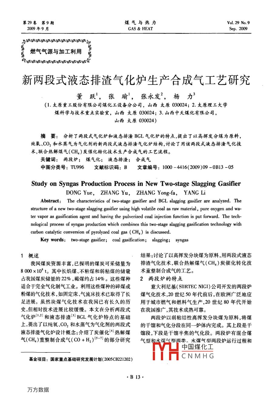 新兩段式液態(tài)排渣氣化爐生產(chǎn)合成氣工藝研究