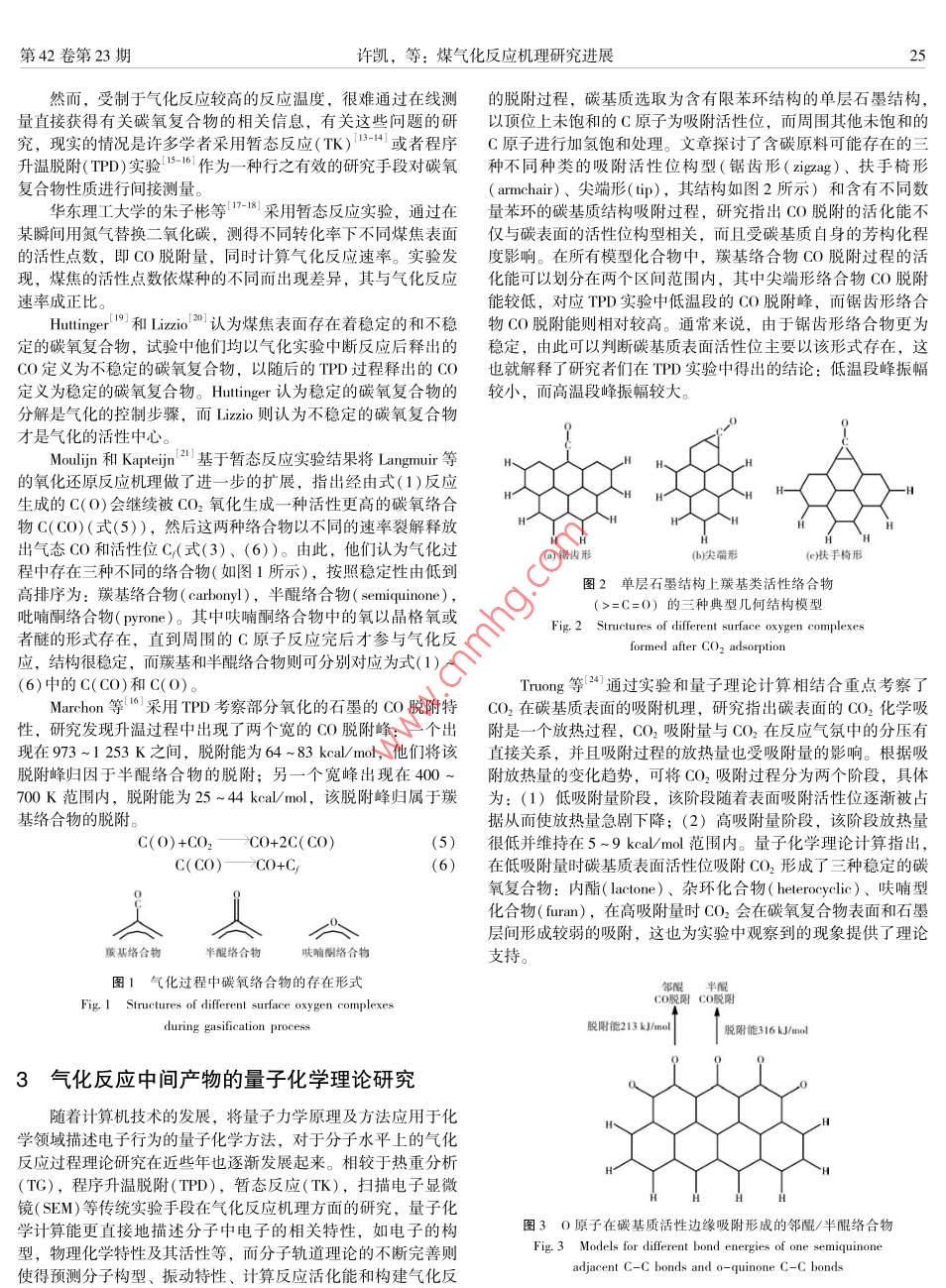煤氣化反應(yīng)機(jī)理研究進(jìn)展
