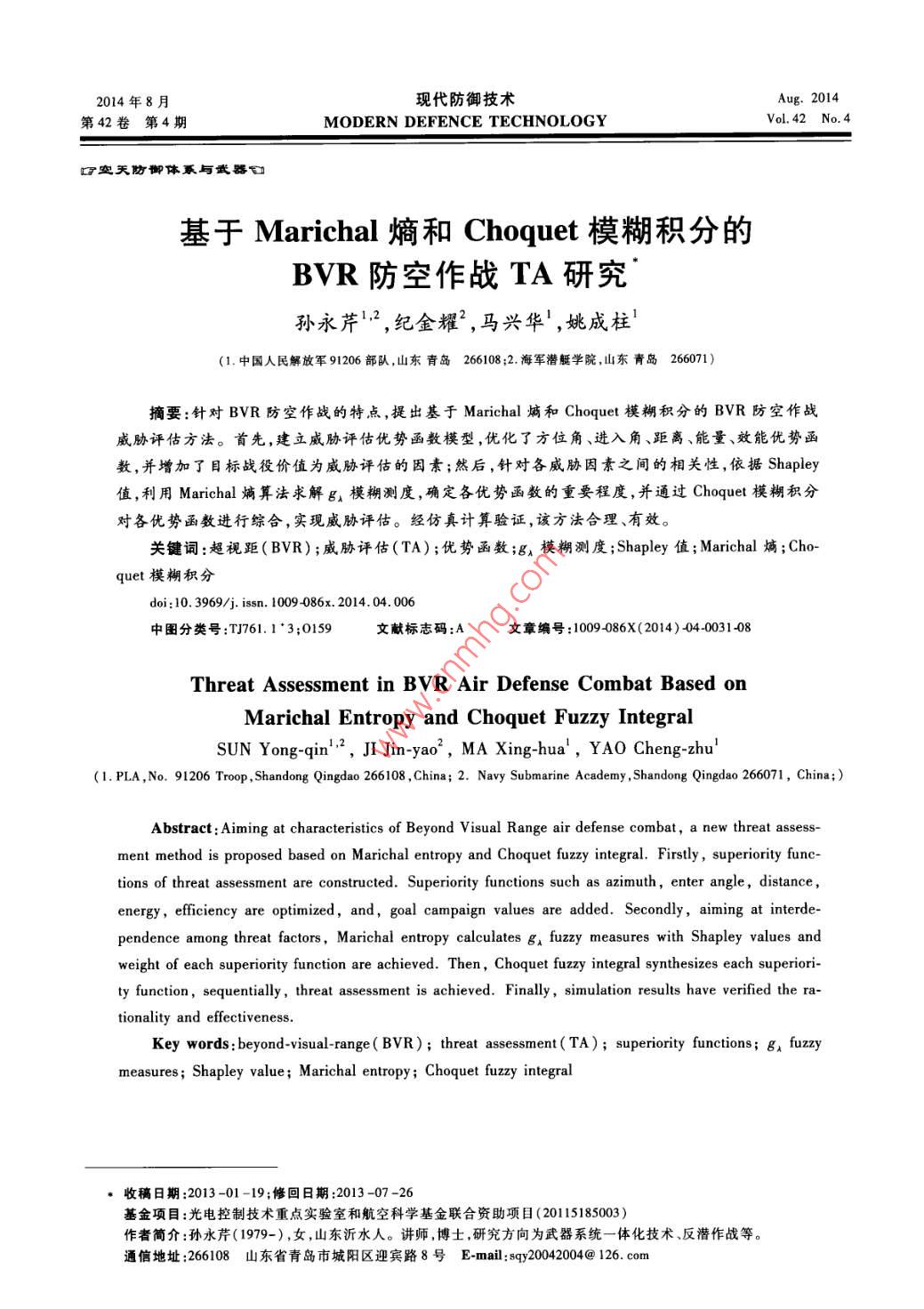 基于Marichal熵和Choquet模糊積分的BVR防空作戰(zhàn)TA研究