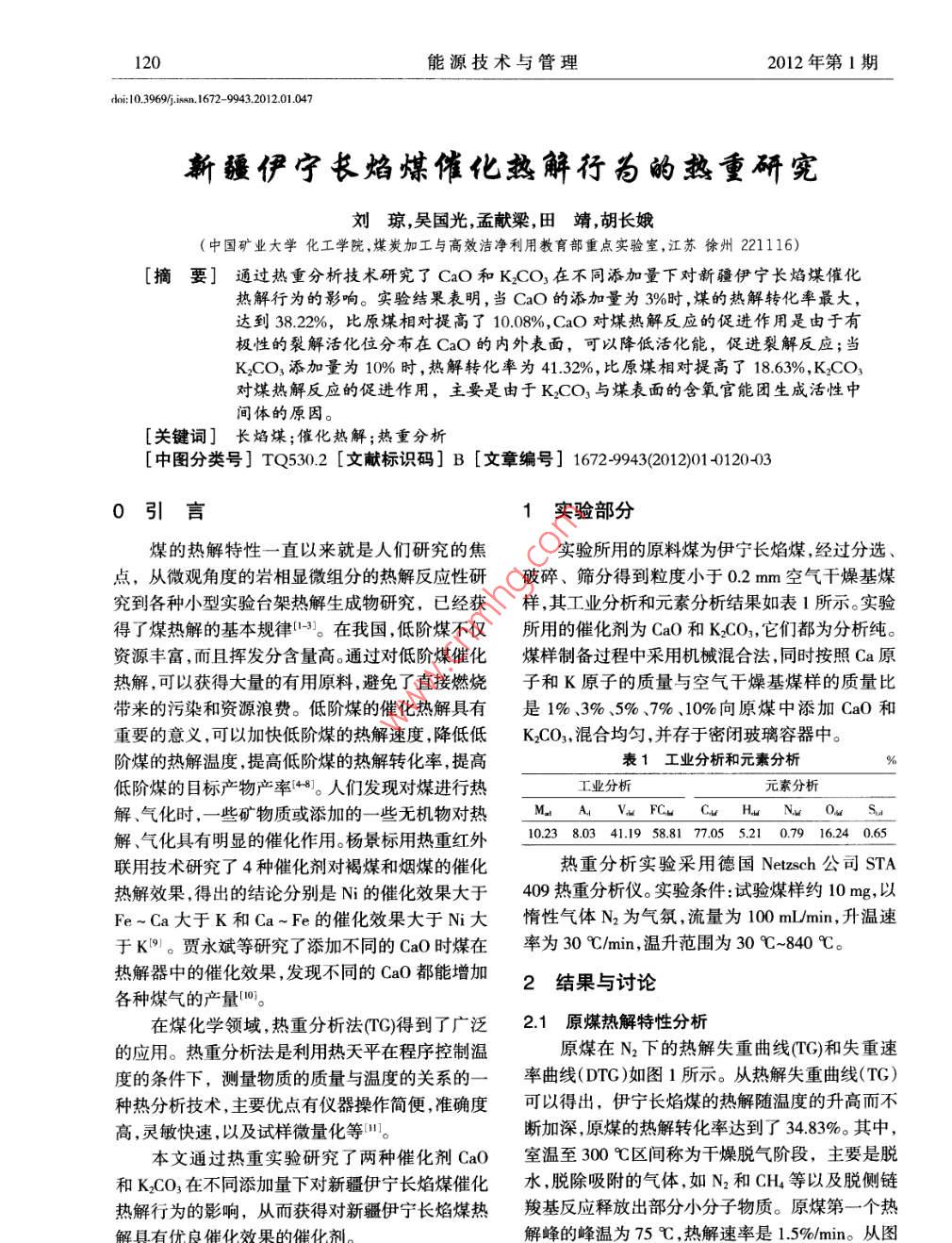 新疆伊寧長焰煤催化熱解行為的熱重研究