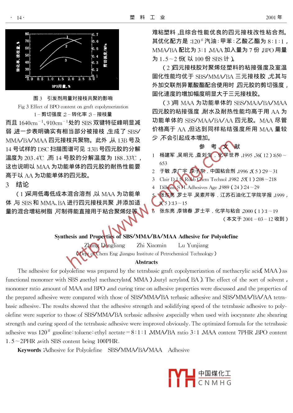 聚烯烴塑料用膠粘劑SBS/MMA/BA/MAA的合成與性能研究