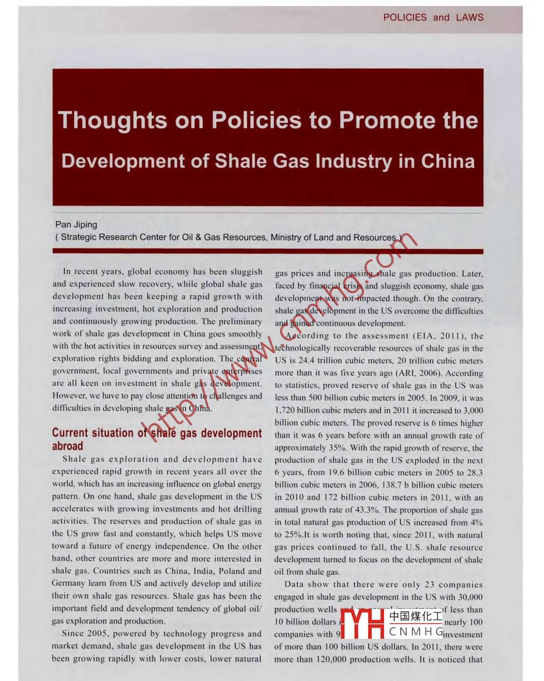 Thoughts on Policies to Promote the Development of Shale Gas Industry in China