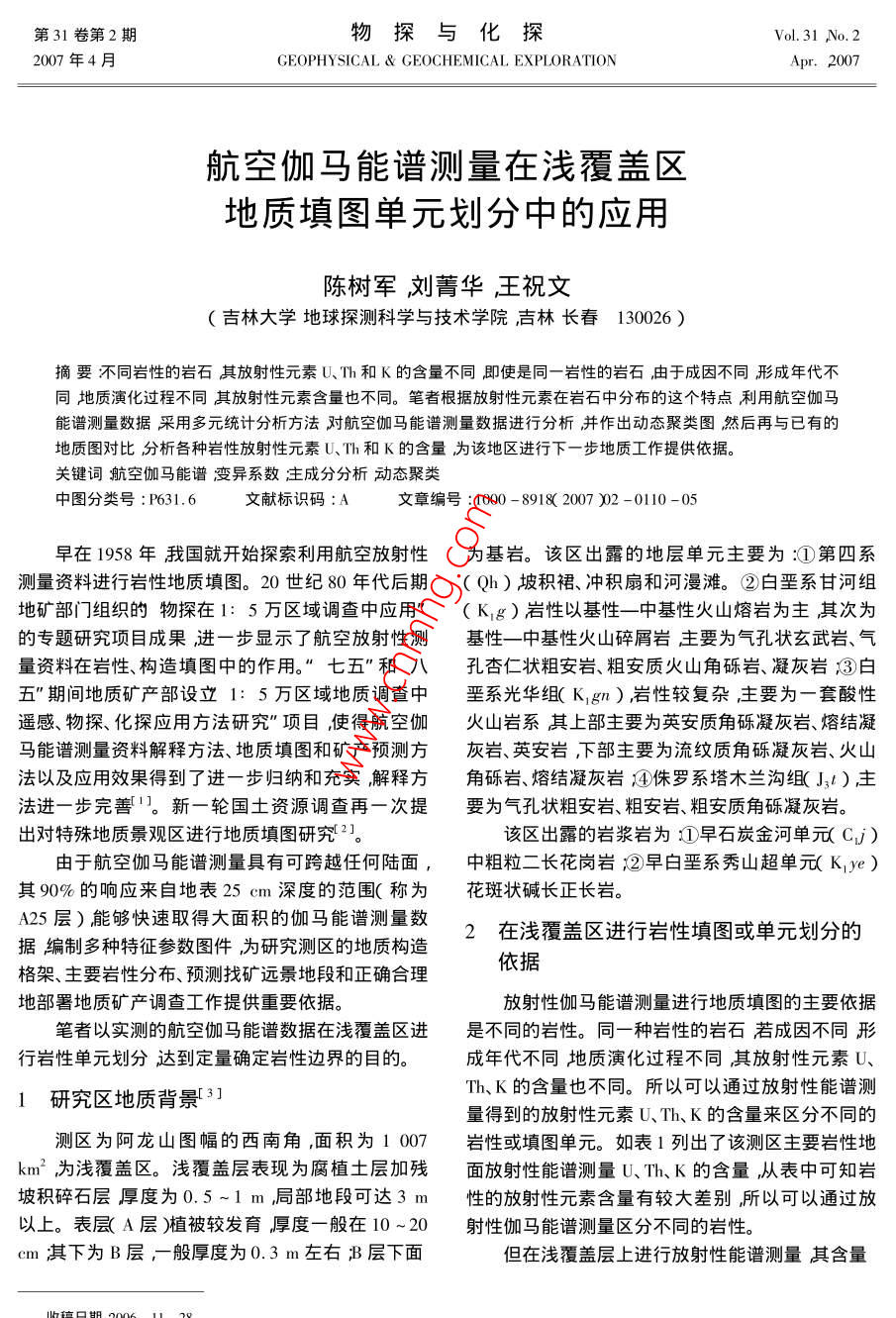 航空伽馬能譜測(cè)量在淺覆蓋區(qū)地質(zhì)填圖單元?jiǎng)澐种械膽?yīng)用