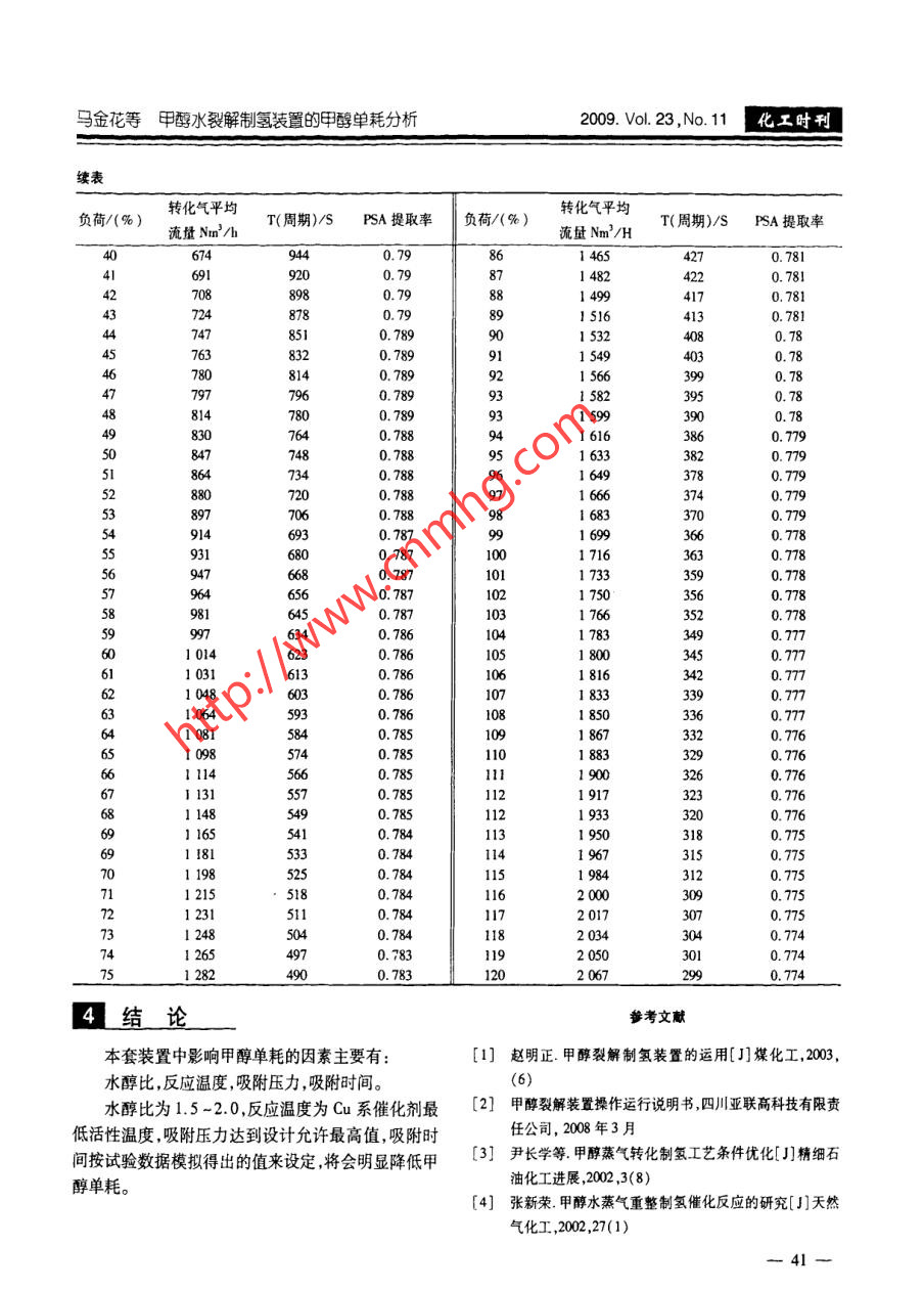 甲醇水裂解制氫裝置的甲醇單耗分析