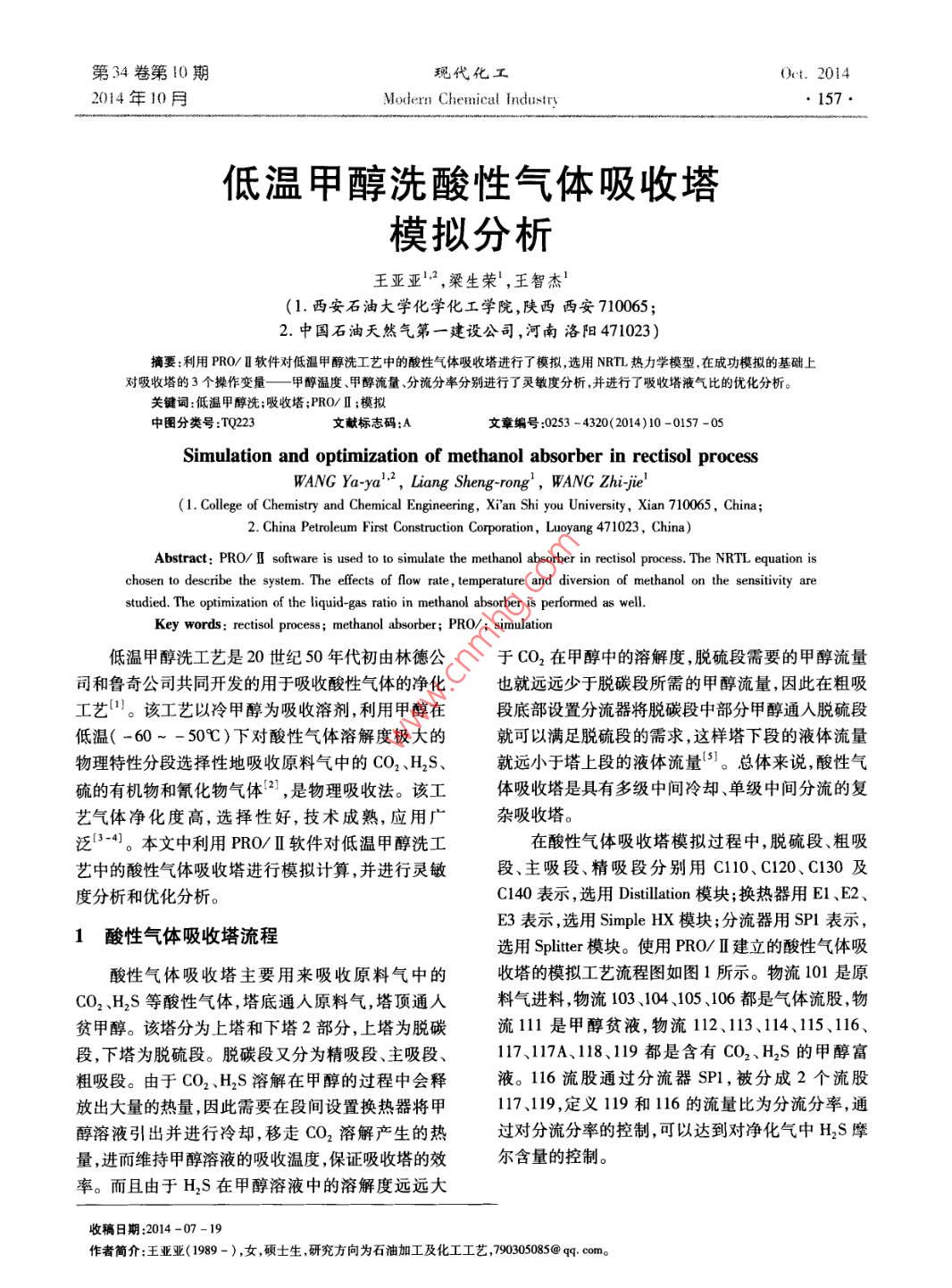 低溫甲醇洗酸性氣體吸收塔模擬分析