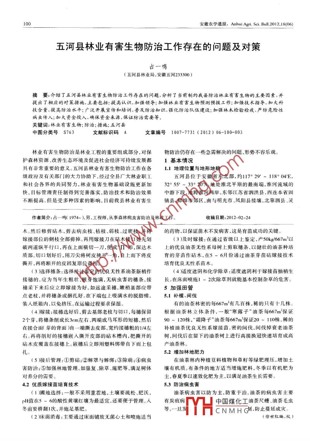 安徽農(nóng)學通報, Anhui Agri.Sci.Bu.201218(06)油茶低產(chǎn)林改造技術(shù)朱寧李彬(程江林業(yè)站,廣東梅縣514000)摘要:油茶林分存在品種混雜、殘次林多、嫁接不當、病蟲害多等問題,導致林分產(chǎn)量低建議從更換良種、墾復撫育、老林更新、科學嫁接等方面對油荼低產(chǎn)林進行改造關(guān)鍵詞:油茶;低產(chǎn)林;改造技術(shù)中圖分類號S794.4文獻標識碼B文章編號1007-7731(2012)06-099-002油茶為常綠小喬木或灌木,是我國南方特有的油料樹清除雜草、灌木,增加林地陽光和通風,改善油茶生長條種。茶油享有“油中之王”之譽,是世界公認的優(yōu)質(zhì)食用油,件。二要墾復深挖,改良土壤,做到“一年一淺鋤,三年一深深受人們喜愛。梅縣位于廣東省東北部、韓江上游,地處低挖”。淺鋤宜在夏季,深度為8~10cm,深挖時間宜在油茶緯,近臨南海,有利于發(fā)展種植油茶。近年來,雖然政府加采摘后到翌年春梢萌動前,深度為20~30cm。墾復要根據(jù)大了對油茶開發(fā)力度,總產(chǎn)量有所提高,但從整體來看,單林地坡度大小實行全墾、帶墾或刀撫,防止水土流失產(chǎn)仍然很低,大多數(shù)油茶林分處于“老、弱、病、殘、劣、荒”3老林更新的狀況。主要原因是油茶林分品種混雜、殘次林多、嫁接不現(xiàn)有油茶林絕大部分已過了盛產(chǎn)期,進入衰老階段,自當、病蟲害等引發(fā)落花落果嚴重。然更新能力差,枝條逐年枯死、冠禿,落花落果嚴重,產(chǎn)量1更換良種下降。改造最好實行老林更新,一是在老樹下種植油茶良據(jù)調(diào)査發(fā)現(xiàn),低產(chǎn)油茶林品種混雜、劣株比例大,結(jié)果種新苗,待新苗生長結(jié)果,再砍去老樹;二是在老樹枝上嫁少或基本不結(jié)果的植株占70%左右,影響了整體產(chǎn)量。因接優(yōu)良接穗,逐步更新;三是逐年鋸剪去一部分老枝,促發(fā)此,進行改造時要更換良種,采用優(yōu)良農(nóng)家品種和油茶優(yōu)萌芽更新,或砍去老樹重新造林。良無性系,對劣質(zhì)植株通過“高接換冠”把產(chǎn)量低下的劣4科學嫁接質(zhì)植株培育成為高產(chǎn)油茶樹。新造油茶林一律采用良種,4.1油茶的高接換冠技術(shù)逐步實現(xiàn)良種化。實踐表明良種油茶比一般品種產(chǎn)量高油茶高接換冠可采用撕皮嵌接技術(shù),該技術(shù)是當前全6~10倍。國公認的改造油茶低產(chǎn)林的一種高接換冠的最佳嫁接新2墾復撫育法,對于改造低產(chǎn)劣質(zhì)油茶林效果特別顯著。撕皮嵌接方低產(chǎn)油茶林普遍荒蕪嚴重,雜草、灌木叢生,還有大喬法如下木侵入,變成混交林。油茶林處于被壓狀態(tài),養(yǎng)分不足,根(1嫁接時間:以5月中旬至6月中旬最佳系大量死亡,樹勢減弱。針對這些現(xiàn)象進行改造時,一要(2)定砧、撕皮:利用現(xiàn)有的低產(chǎn)幼、壯齡油茶樹作砧作者簡介:朱寧(1970-).廣東興寧人,中專,從事林業(yè)技術(shù)推廣與服務工作。收稿日期:2012-01-10上接63頁)以后每年反復修剪。秋季,葡萄落葉進入休眠期。葡萄耐寒力不高,越冬適6換土和修根合的低溫在0~5℃,以0℃為好。因此,冬季應將盆栽葡換土時期可在秋末或春季萌芽前進行,先澆透水,然后萄放在溫濕度較穩(wěn)定的地方。北方地區(qū)以窖藏越冬最為常將盆倒置輕扣盆沿,倒出整個根系及盆土,然后用竹片將見。盆栽數(shù)量少可放于菜窖中越冬,數(shù)量多應挖溝貯藏。貯布滿根系的土團松落一部分,將四周根系減去一部分,長藏期間,經(jīng)常檢查覆蓋物有無破損,一旦發(fā)現(xiàn)應及時修補。根可減去1/2,然后重新定植在新的培養(yǎng)土中。在溫度允許的情況下,城市花友可將葡萄存放于三樓以上7病蟲害防治的樓道或平臺上,將盆及莖蔓用塑膜包好,既保溫,又能防1病害。葡萄的主要病害是霜霉病,發(fā)病后葉背面出止碰撞等機械損傷。現(xiàn)灰白色霉層,一般是在低溫多濕環(huán)境中發(fā)生,此時要摘參考文獻除病葉,定期噴施殺菌藥劑,如退菌持,百菌清等農(nóng)藥。(2)口盧翠喬怎樣使多結(jié)果河南科技986(10)蟲害葡萄的蟲害主要有紅蜘蛛和介殼蟲,危害葡萄枝葉,2井志芹盆栽葡中國煤化工(21)發(fā)生后要剪除病葉,定期噴施觸殺蚧螨、蚧螨靈等藥劑?!?]孫執(zhí)中盆栽葡CNMHG8越冬管護(徐愛民編、校)安徽農(nóng)學通報, Anhui Agri.Sci.Bull2012,18(06)五河縣林業(yè)有害生物防治工作存在的問題及對策占一鳴(五河縣林業(yè)局,安徽五河23300)摘要:介紹了五河縣林業(yè)有害生物防治工作存在的問題,分析了當前制約我縣防治林業(yè)有害生物的主要因素,并提出了相應的對策措施,主要包括:提高認識,加強領導;加強林業(yè)有害生物預測預報工作;加強技術(shù)指導,加大科技含量,提高防治水平;廣泛開展宣傳和培訓,普及防治知識,強化防治隊伍建設;加強林木檢驗檢疫,嚴防危險性病蟲傳入;加大資金投入,確保資金來源,保誣防治需要等關(guān)鍵詞:林業(yè)有害生物;防治;措施;五河縣中圖分類號S763文獻標識碼A文章編號1007-7731(2012)06-100-003林業(yè)有害生物防治是林業(yè)工程的重要組成部分,對保物防治仍存在一些急需解決的問題形勢不容樂觀。護森林資源、改善生態(tài)環(huán)境及促進社會經(jīng)濟可持續(xù)發(fā)展都1基本情況具有非常重要的意義。五河縣林業(yè)有害生物防治工作在各11地理位置與地形地貌級政府及有關(guān)