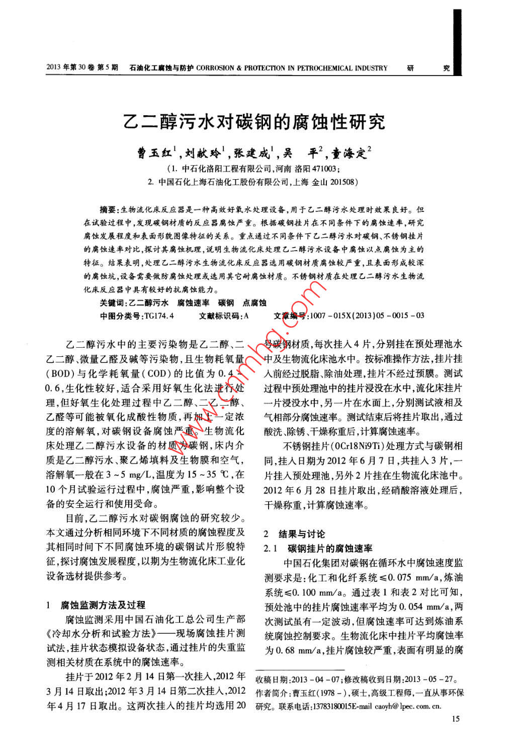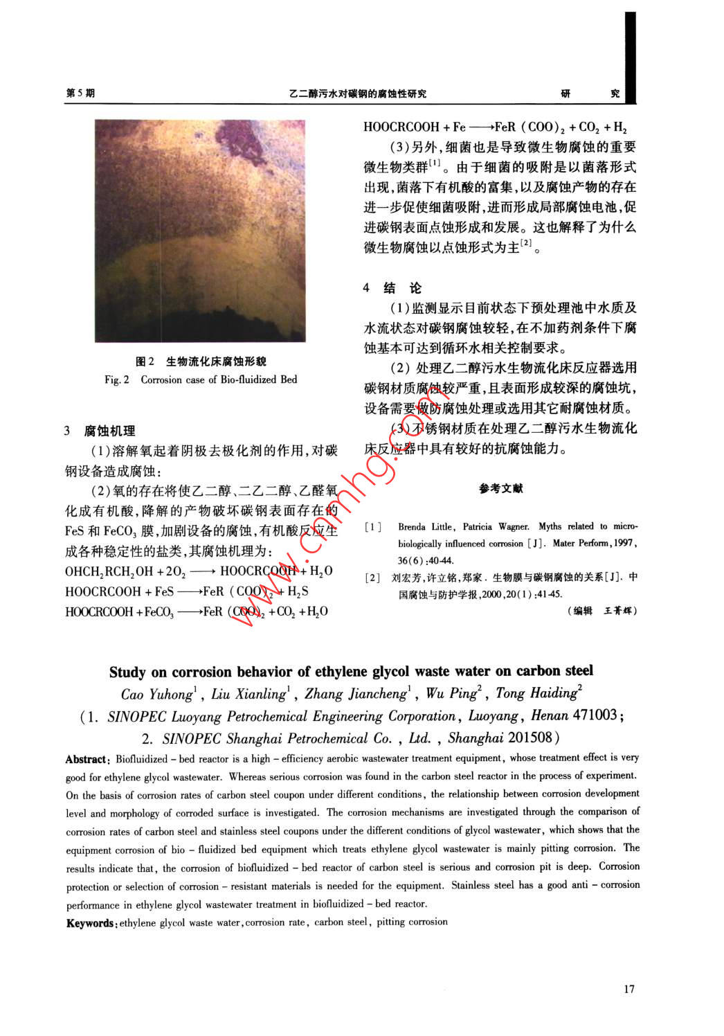 乙二醇污水對(duì)碳鋼的腐蝕性研究