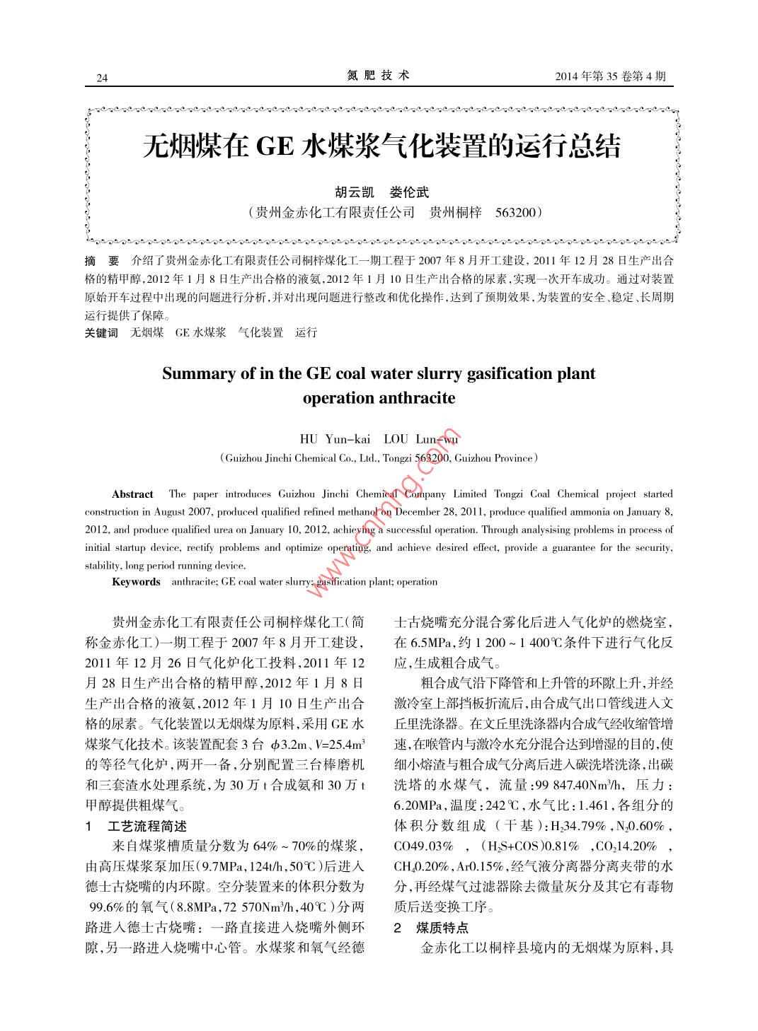 無(wú)煙煤在GE水煤漿氣化裝置的運(yùn)行總結(jié)