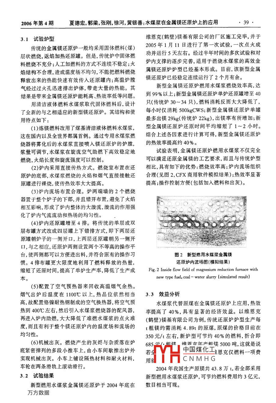 水煤漿在金屬鎂還原爐上的應(yīng)用