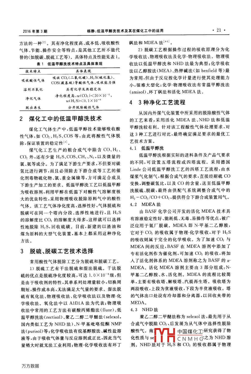 低溫甲醇洗技術及其在煤化工中的運用
