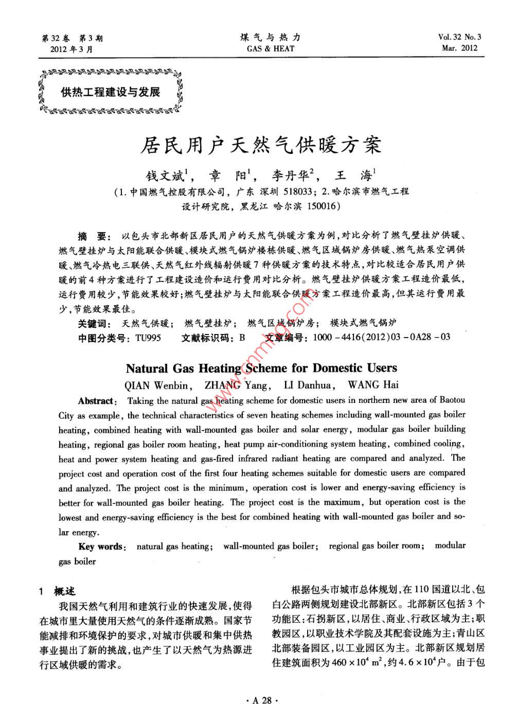 居民用戶天然氣供暖方案