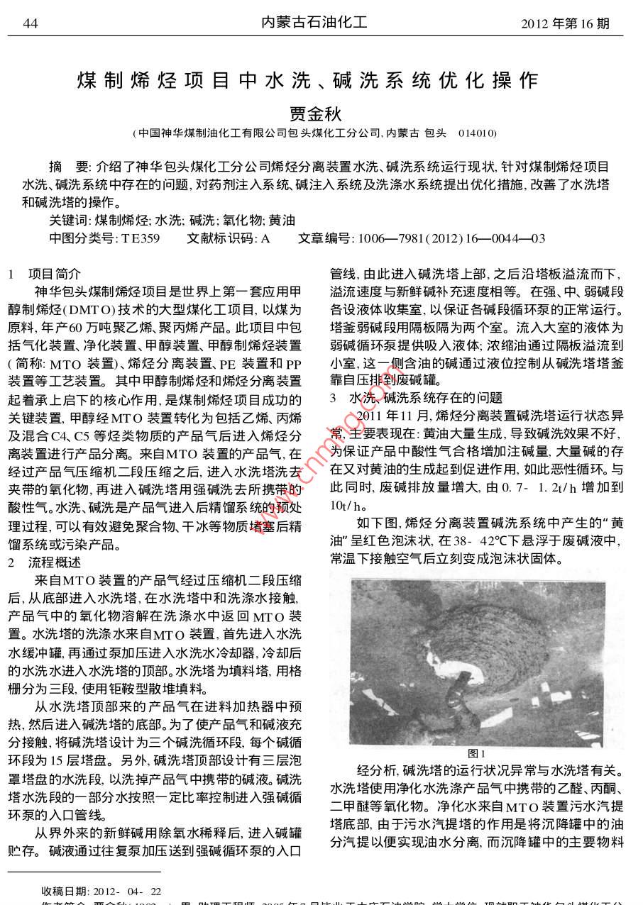 煤制烯烴項目中水洗、堿洗系統(tǒng)優(yōu)化操作 煤制烯烴項目中水洗、堿洗系統(tǒng)優(yōu)化操作