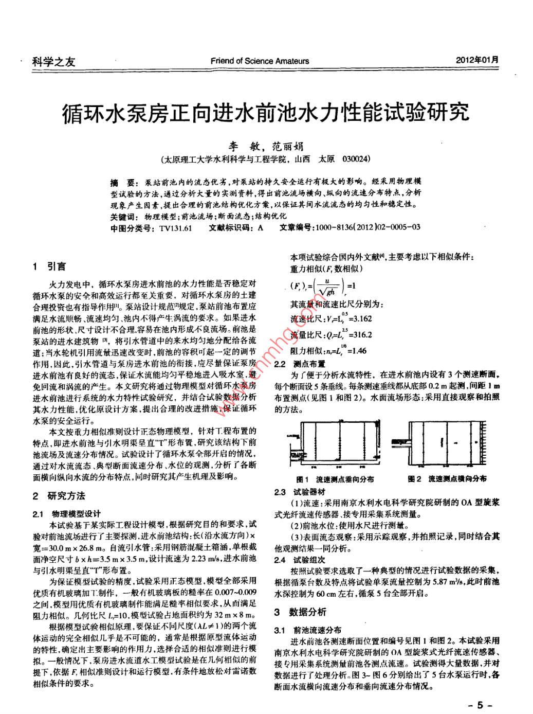 循環(huán)水泵房正向進水前池水力性能試驗研究
