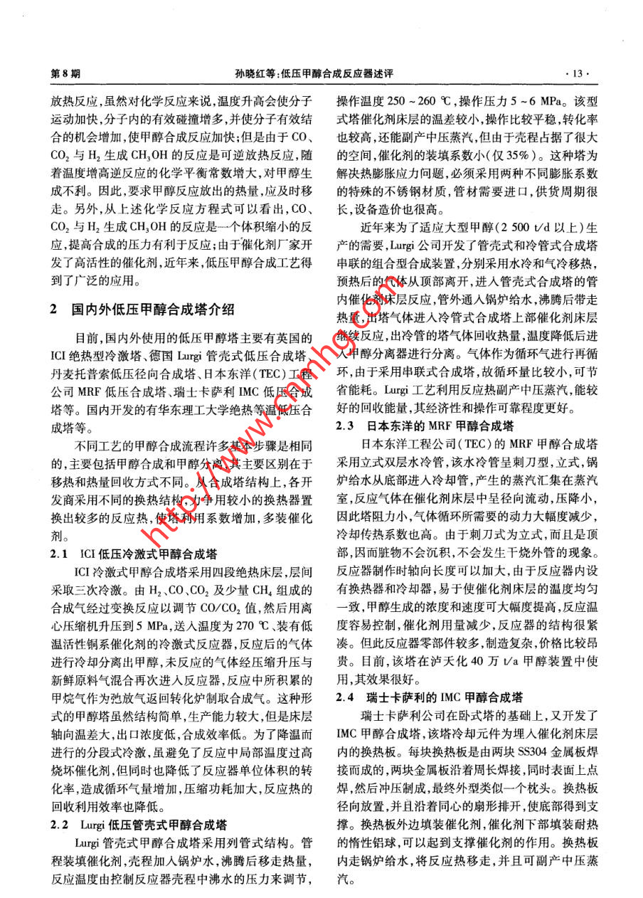 低壓甲醇合成反應(yīng)器述評(píng)