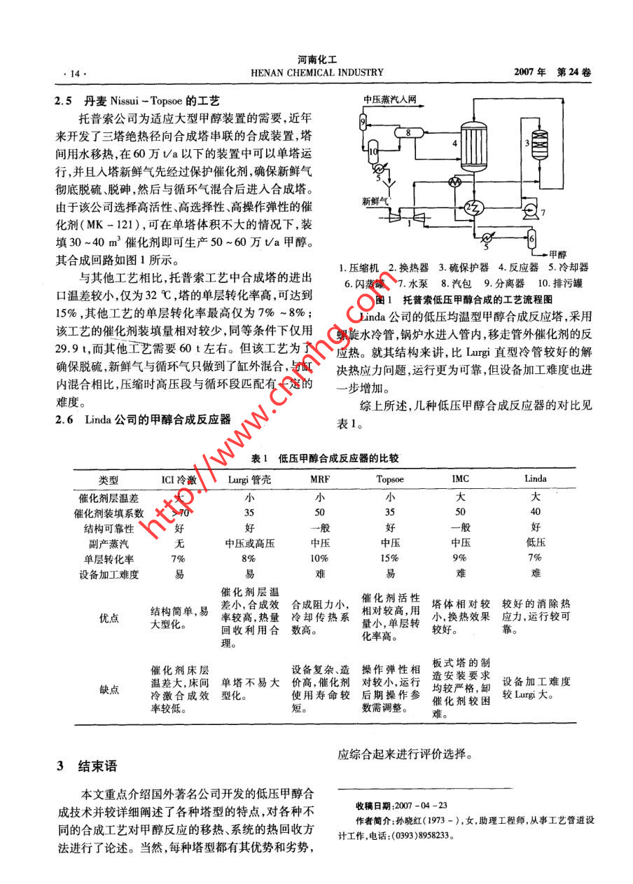 Lurgi和ICI低壓甲醇合成工藝比較 2020-03-17