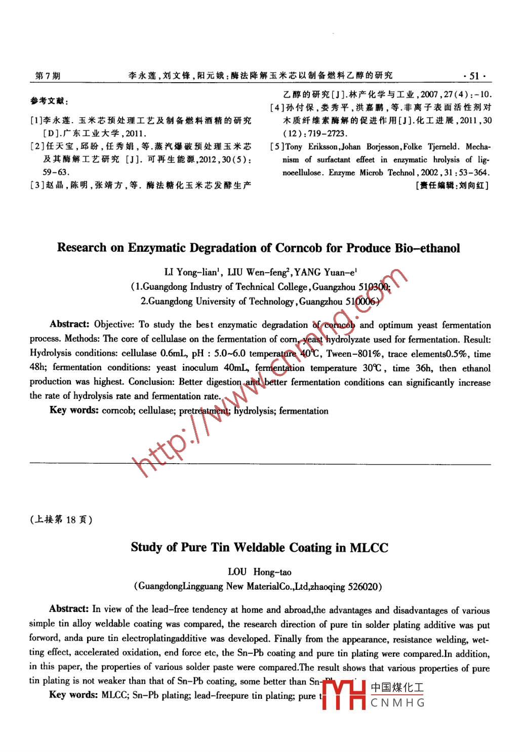 酶法降解玉米芯以制備燃料乙醇的研究