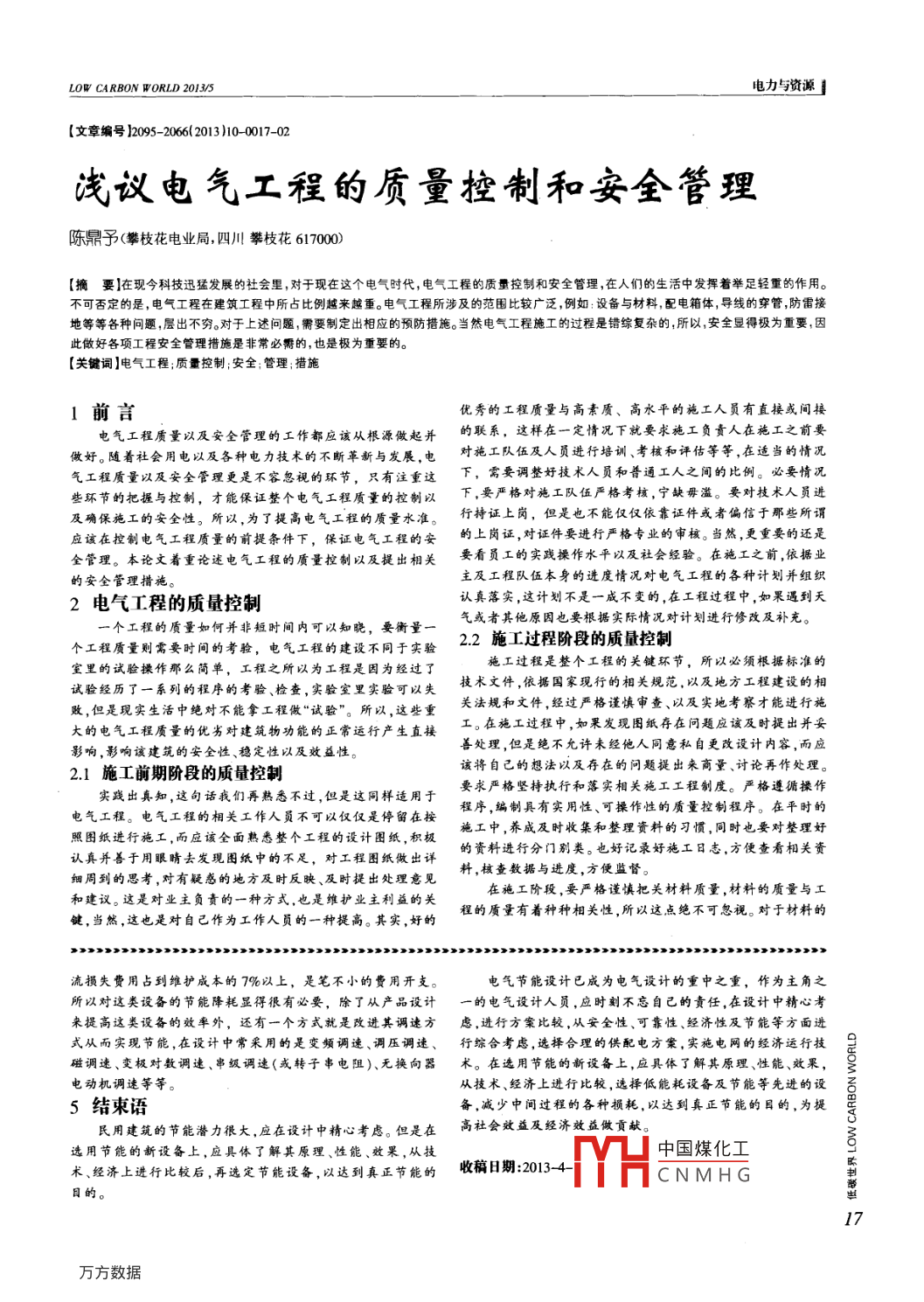 - 期刊名字:低碳世界
