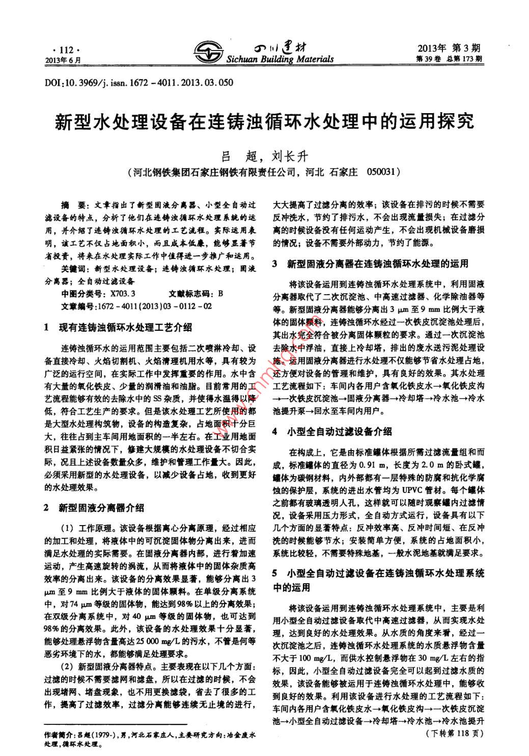 新型水處理設備在連鑄濁循環(huán)水處理中的運用探究