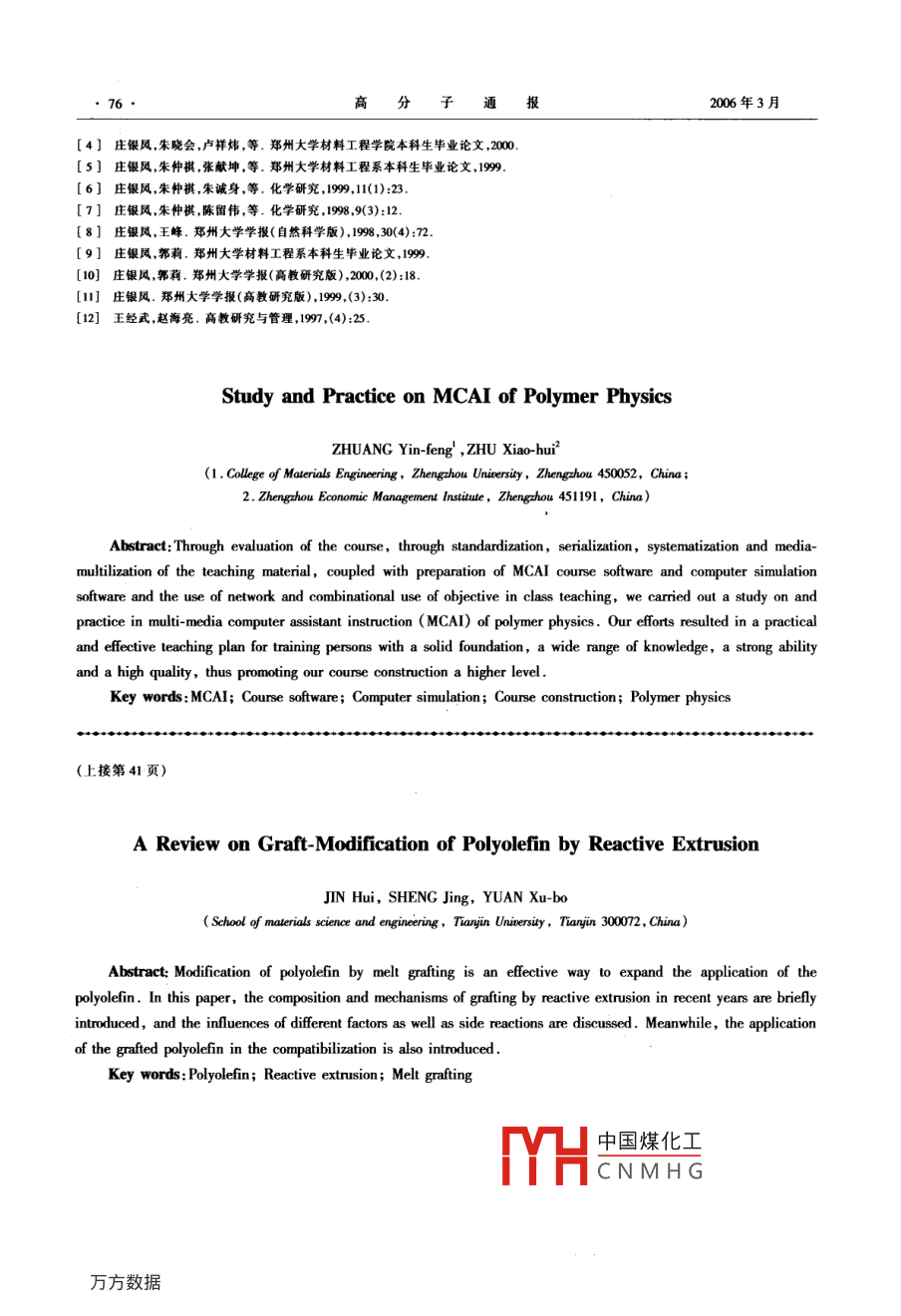 反應(yīng)擠出聚烯烴接枝改性研究進(jìn)展