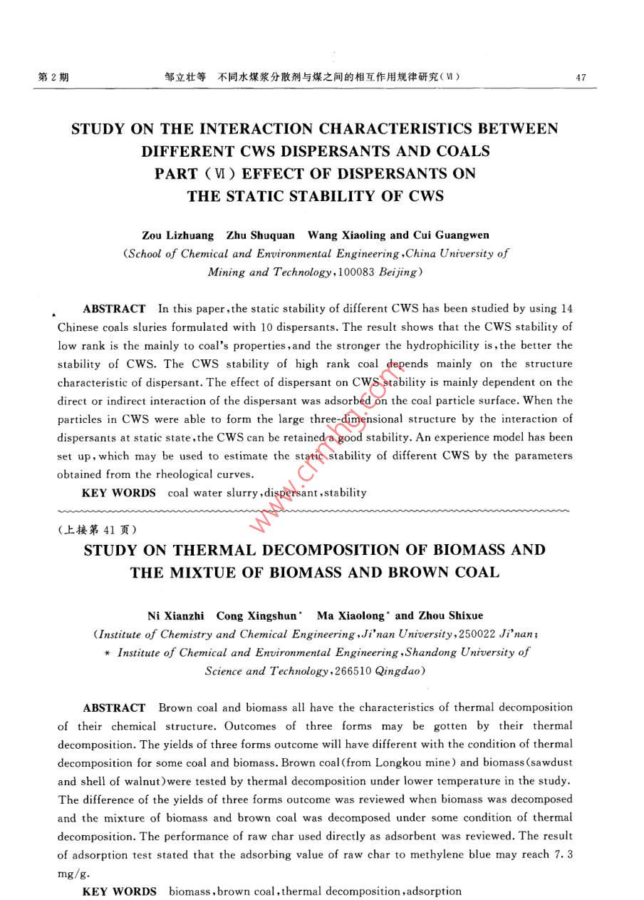 - 期刊名字:煤炭轉(zhuǎn)化