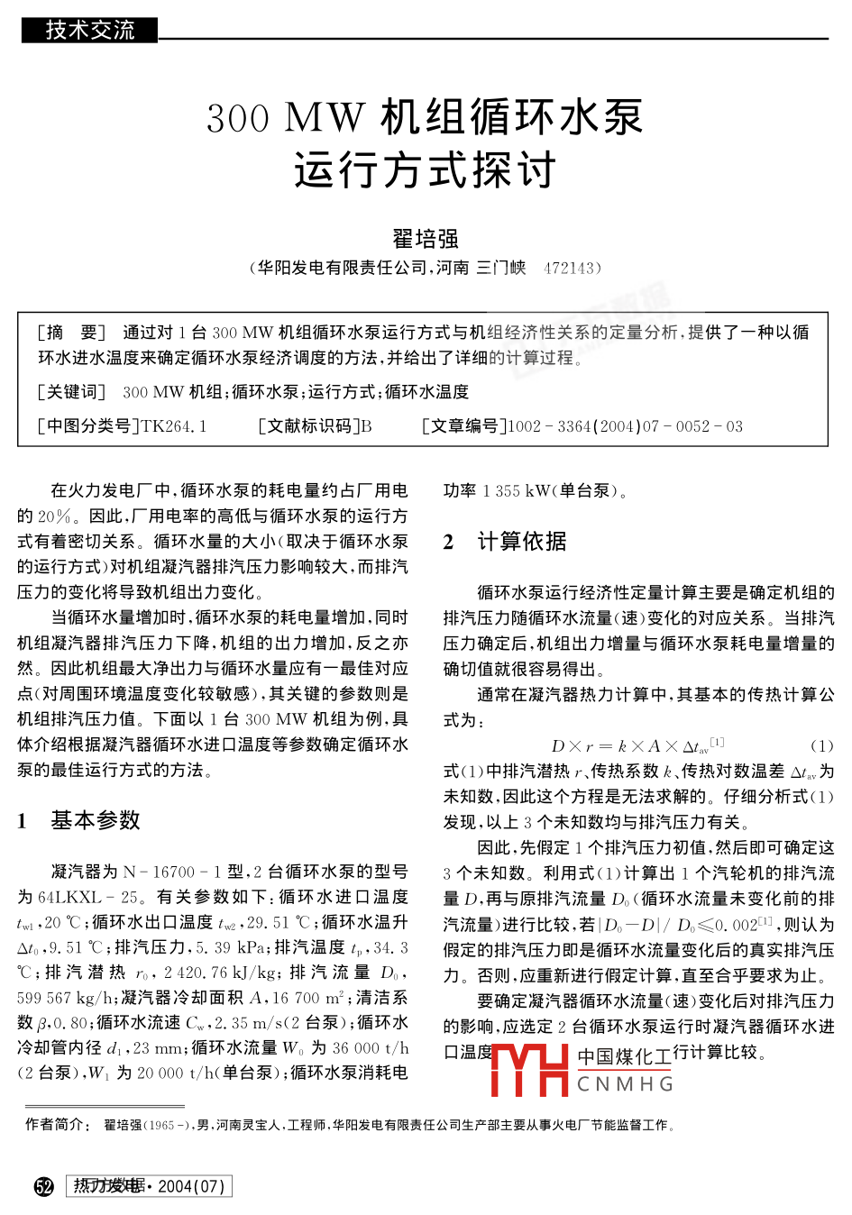 300MW機(jī)組循環(huán)水泵運(yùn)行方式探討
