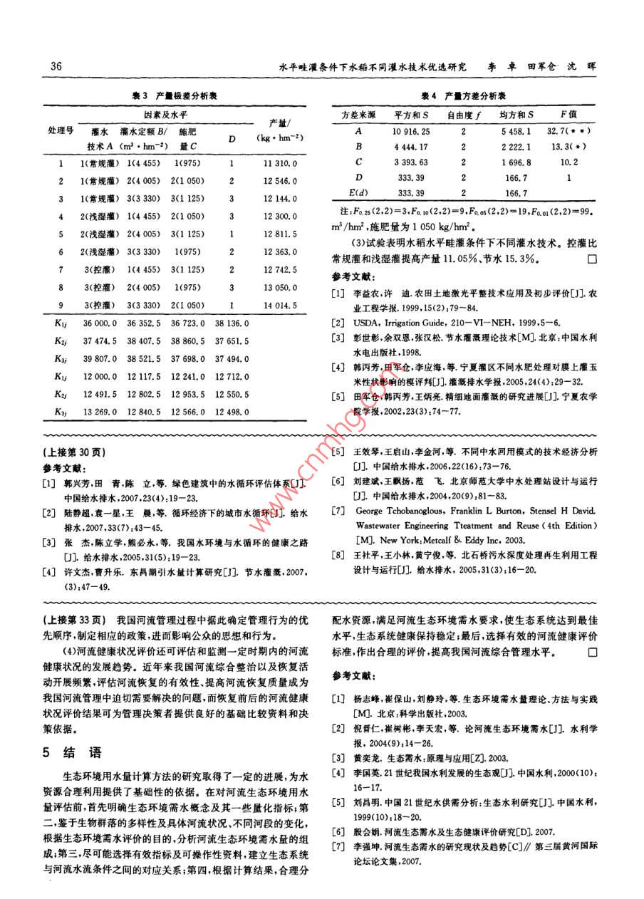 中國農(nóng)村水利水電·2008年第11期文章編號:1007-2284(2008)11-002803西安護城河自循環(huán)水利用研究武萌,黨志良,張譜(西安理工大學(xué)西北水資源與環(huán)境生態(tài)教育部重點實驗室陜西西安710048)擴要:通過對西安護城河水環(huán)境系統(tǒng)實際情況的分析,提出了引用護城河自循環(huán)水的新思路,擬在護城河西北角處修建的一個小型地下式中水處理站使得污水循環(huán)利用,從經(jīng)濟、技術(shù)、環(huán)境保護等方面,分析比較不同自循環(huán)水利用方式,確定采用二級加壓的自循環(huán)系統(tǒng)模型,使護城河的水循環(huán)流動起來,不僅為護城河提供了經(jīng)濟合理的補給水源,而且保證了護城河的水質(zhì)安全。關(guān)鍵詞;自循環(huán)系統(tǒng);自循環(huán)水;經(jīng)濟循環(huán)水量;中水處理站中圖分類號:X37文獻標(biāo)識碼:AResearch on the Use of Self-circular Water in the Xian MoatWU Meng, DANG Zhi-liang, ZHANG Pu(Key Laboratory of Northwest Water Resources and Environment Ecology of Ministry ofEducation at Xian University of Technology, Xian 710048, China)Abstract: By analyzing the practicality of water environment system in the moat, this paper puts forward a new thought aboutelf-circular water of the moat, A small underground reclaimed water treatment station will be built in the northwest oftheMoat, realizing wastewater reclamation and reuse. From the factors such as economy, technology, environment protection, this paper adopts the model of adding two grade pressure in self-circular system and makes the water of moat circulate and flow. The newthought not only offers an economical and reasonable water supplement source for the moat, but also ensures the safety of waterquality of the moat.Key words: self-circular system; self-circular water economical circular water quantity reclaimed water treatment station1護城河水環(huán)境系統(tǒng)分析目前,護城河供水水源有四條,一是雨水;二是長安區(qū)大峪河引水年供清水1000萬m3;三是曲江水廠退水,泥沙含量西安護城河環(huán)繞西安市著名的明城墻既是歷史遺留下來大,主要污染物是懸浮物目前無準(zhǔn)確統(tǒng)計水量;四是興慶湖退的寶貴文化遺產(chǎn)也是城市排雨體系的一個重要組成部分。護水,隨著興慶湖污染綜合治理工程的完成每年向護城河輸水城河環(huán)線周長14.65km,河道東南角高西北角低,東南角高程約240萬m3,護城河現(xiàn)狀的水流方向為:水從東南角分為兩403.9m西北角高程391.81m,高差達(dá)12.12m,河底落差路,一路經(jīng)西南角流向西北角,一路經(jīng)東北角流向西北角,最終10.96m,河底坡度2.5‰~0.35‰河道平均深度9~11m,攔水從西北角外排入渭河。護城河現(xiàn)狀水環(huán)境系統(tǒng)見圖1河壩共7座,護城河平均水深65m,河底寬度15-20m;整個2護城河自循環(huán)系統(tǒng)技術(shù)特征護城河系統(tǒng)分為4個梯形庫區(qū),總庫容118.48萬m3,護城河正常蓄水庫容33萬m3,目前每天補充進的水量已經(jīng)增加到2.1自循環(huán)系統(tǒng)新思路的提出3.6萬m3,占總庫容的10.9%。為了更好地利用水資源提高對于西安這樣缺水的地區(qū),景觀水體每日需要引用大量的水資源的重復(fù)利用率,可以考慮在護城河的西北角新建一個小水庫或水廠原水這樣勢必會造成水資源的大量浪費給社會型地下式中水處理站,建立護城河自循環(huán)系統(tǒng)帶來一些問題,而且,目前西安市的市政水每立方米價格已升到3元左右如果用市政水作為景觀補水費用比較高在經(jīng)濟收稿日期:2008-06-12上是不可行的。因此應(yīng)該考慮將護城河的水循環(huán)利用提高水作者簡介:武萌(1982),女,碩士研究生研究方向為污水處理與的利用效率回用護城河是一條封閉水系,其水體無法自行流動,其地勢為西安護城河自循環(huán)水利用研究武黨志良張西北角2.2.2鋪設(shè)回用水管此外還可以考慮從西北角的中水處理站后開始鋪設(shè)回用水外排水管至護城河的東南角,使得中水處理站處理過的水通過回用水管重新流入護城河的東南角并和大峪水庫引來的補給水起向護城河供水。水流方向同現(xiàn)狀。鋪設(shè)回用水管的自循環(huán)綠地系統(tǒng)見圖3。中水處理站污水網(wǎng)用泵回用水管部分護西北角大略水庫補給水圖1護城河水環(huán)境系統(tǒng)現(xiàn)狀明城墻東南角最高,西北角最低。故依據(jù)其地勢特點,護城河自循環(huán)系統(tǒng)設(shè)計的思路為:補給護城河的原水仍為水庫或水廠水,新鮮的原水從護城河?xùn)|南角流入,利用自然高程差使其流經(jīng)西南東南角角流向西北角,一部分河水由護城河西北角流出經(jīng)北家口污水處理廠,最后排入渭河。同時在護城河的西北角新建一個小護城河大略水庫補給水型地下式中水處理站和攔水壩,一部分需重復(fù)利用的河水由地圖3鋪設(shè)回用水管的自循環(huán)系統(tǒng)下式中水處理站經(jīng)一級、二級及深度處理達(dá)到《景觀環(huán)境用水2.23方案優(yōu)選的再生水水質(zhì)標(biāo)準(zhǔn)》GB/T18921-2002)后由提升泵提至攔水對二級加壓和鋪設(shè)回用水管兩個方案進行了比較見表1壩上循環(huán)利用,使護城河的水體形成一個閉合、循環(huán)流動的水表1護城河自循環(huán)水利用方案的比較體。與此同時由于氣候、地質(zhì)等地域特點造成河水的蒸發(fā)及方案滲漏,使得護城河的河水在循環(huán)流動過程中造成輸水損失,因由于護城河?xùn)|南