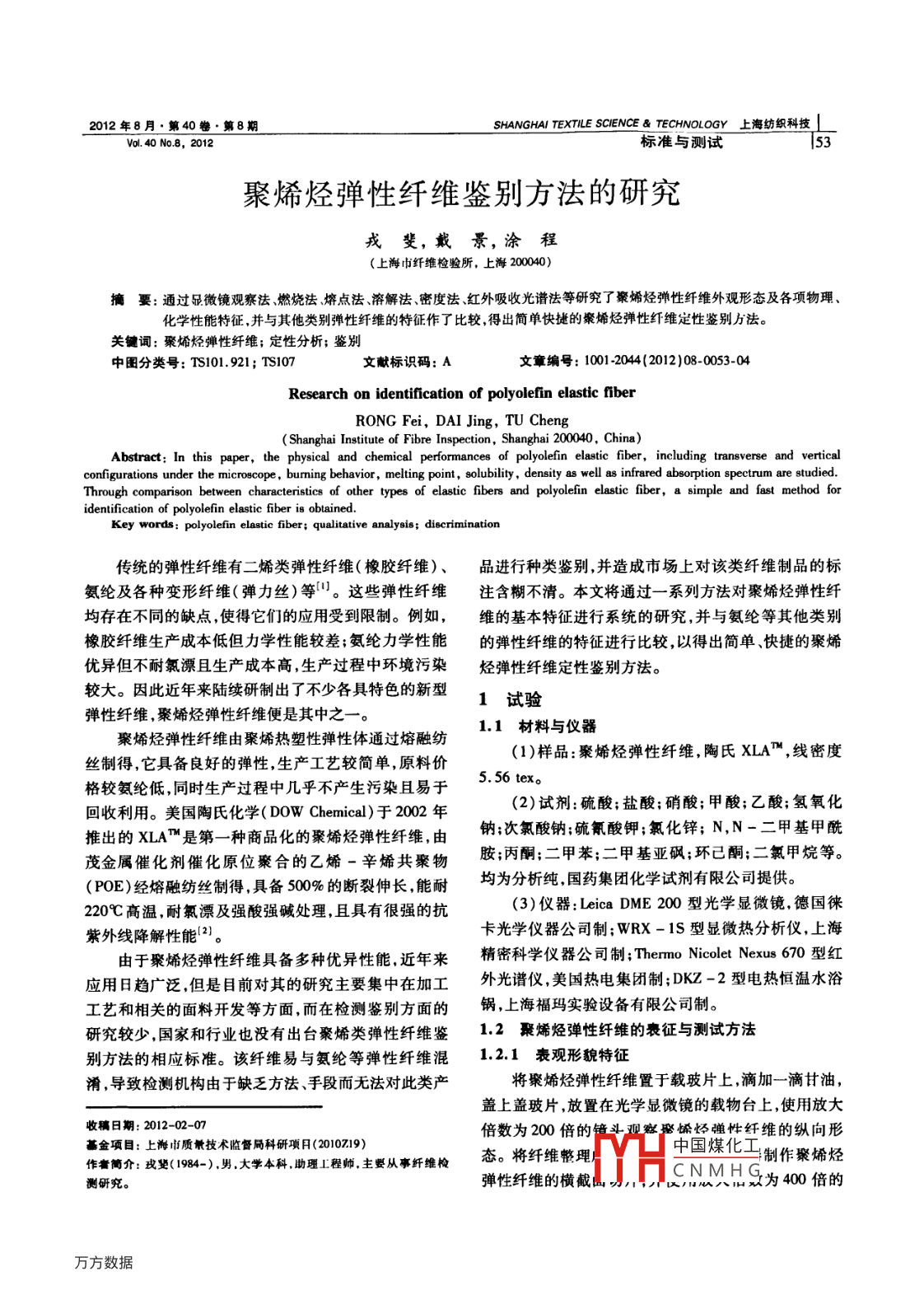 • 作者單位:上海市纖維檢驗所