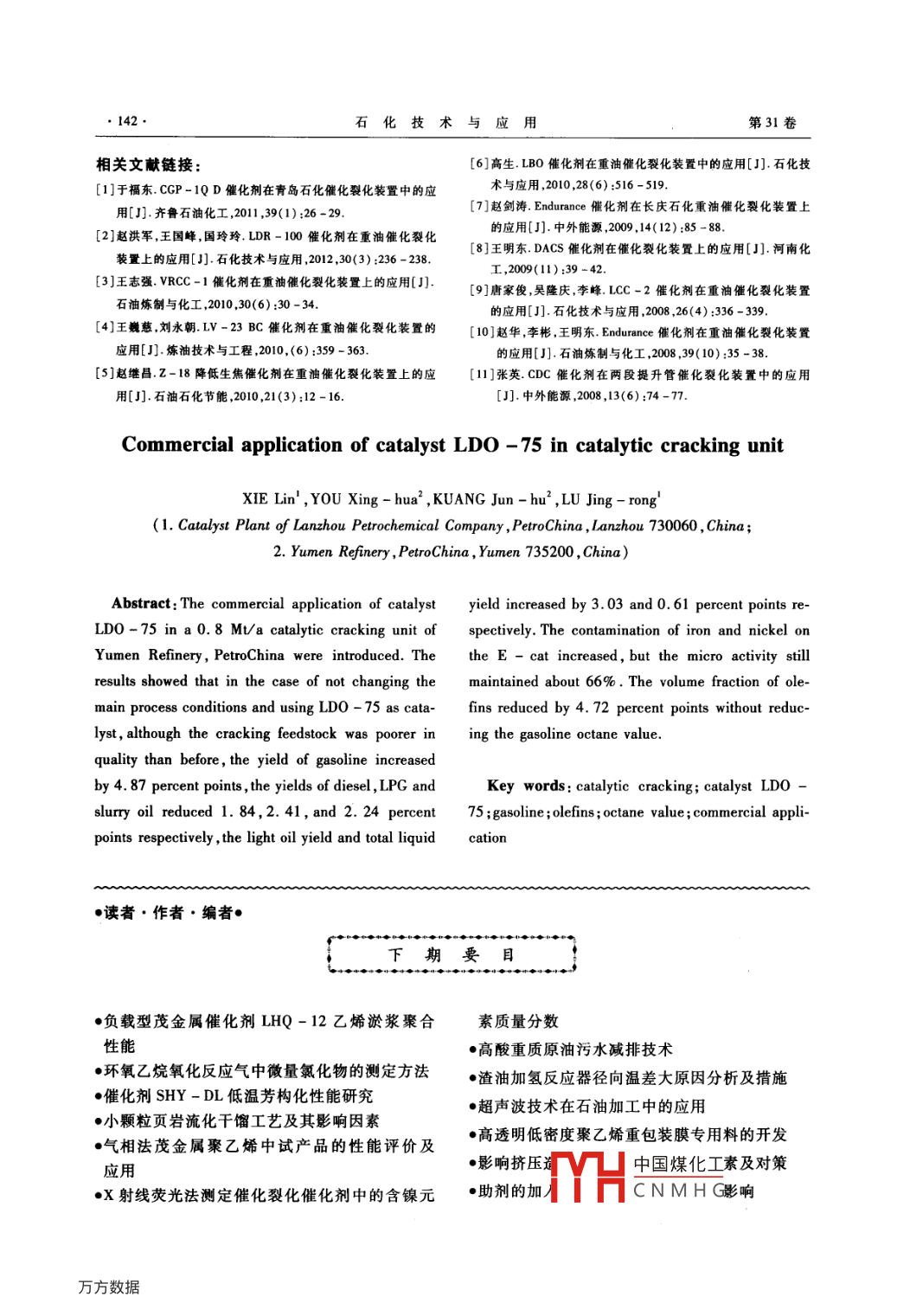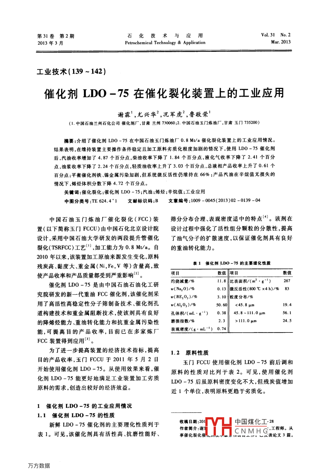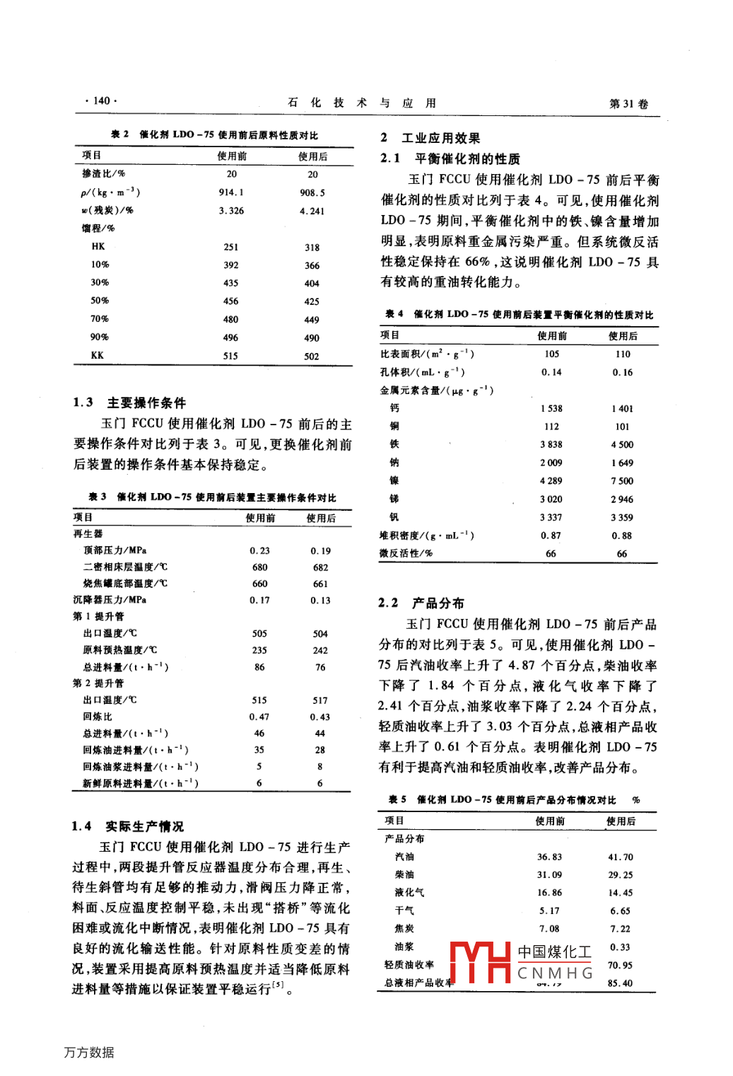 催化劑LDO-75在催化裂化裝置上的工業(yè)應(yīng)用