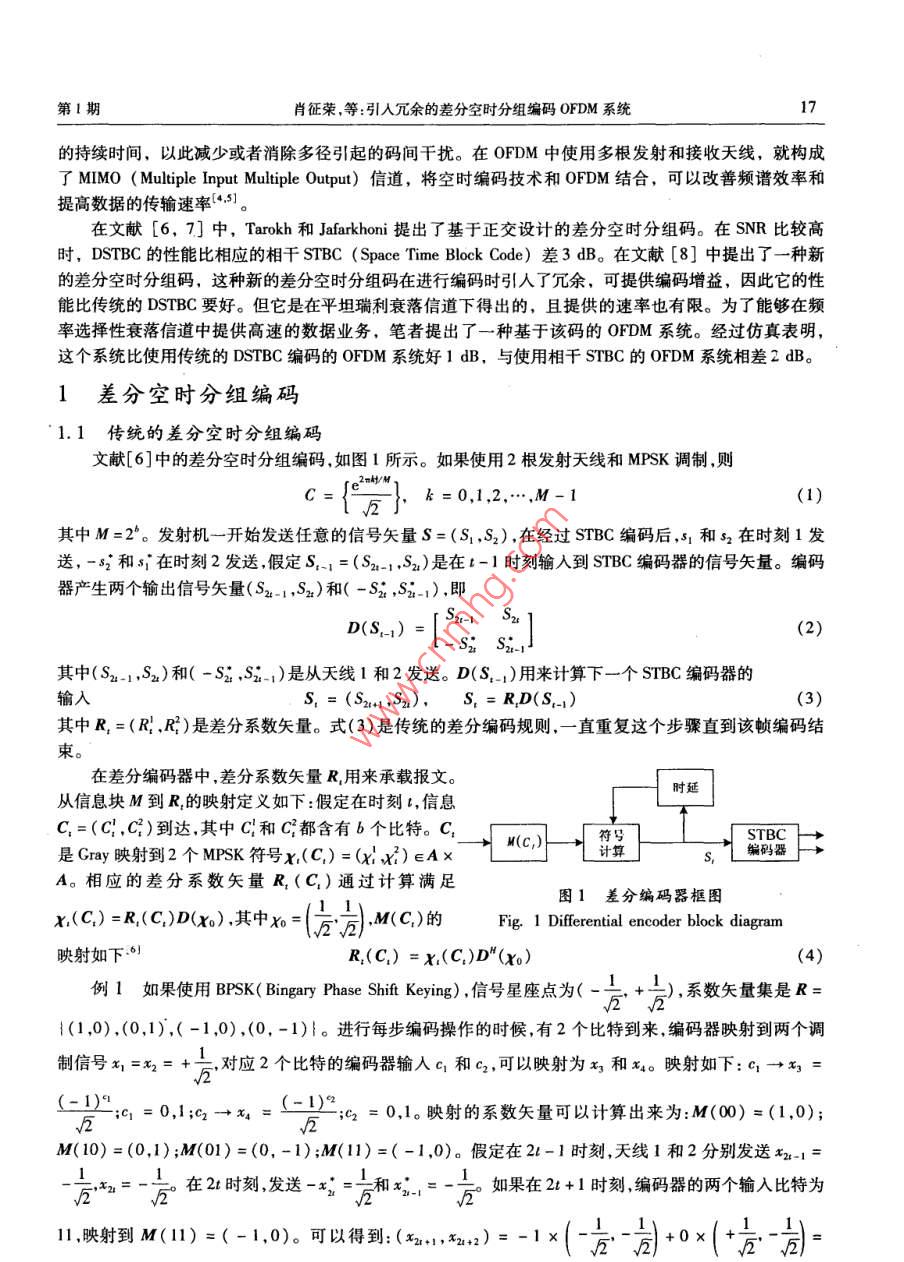 引入冗余的差分空時(shí)分組編碼OFDM系統(tǒng)