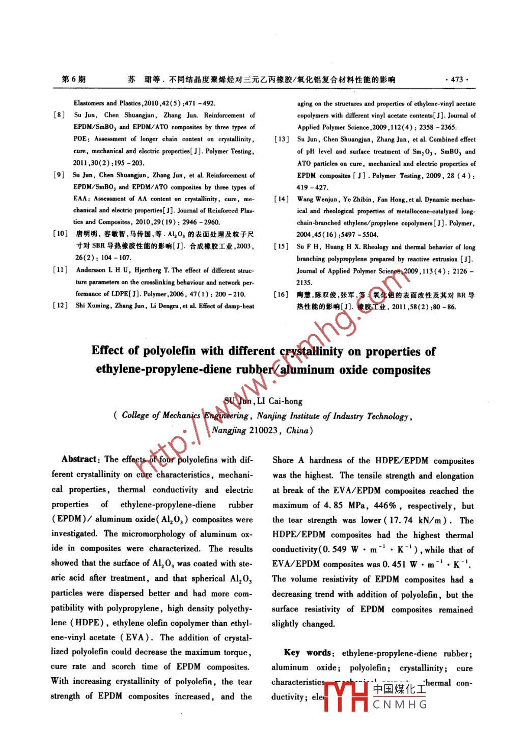 不同結(jié)晶度聚烯烴對三元乙丙橡膠/氧化鋁復(fù)合材料性能的影響